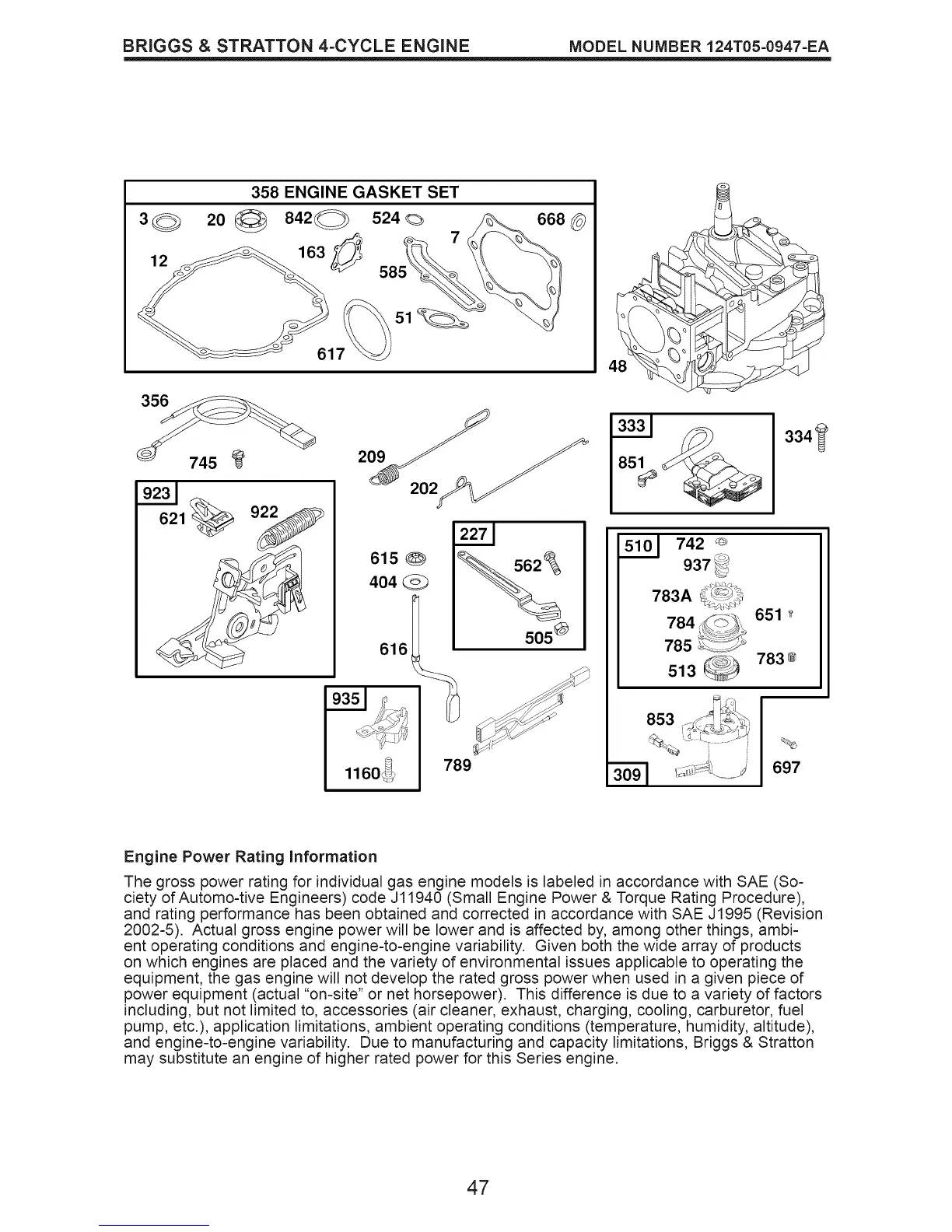 including, but not limited to, accessories (air cleaner, exhaust, charging, cooling, carburetor, fuel
