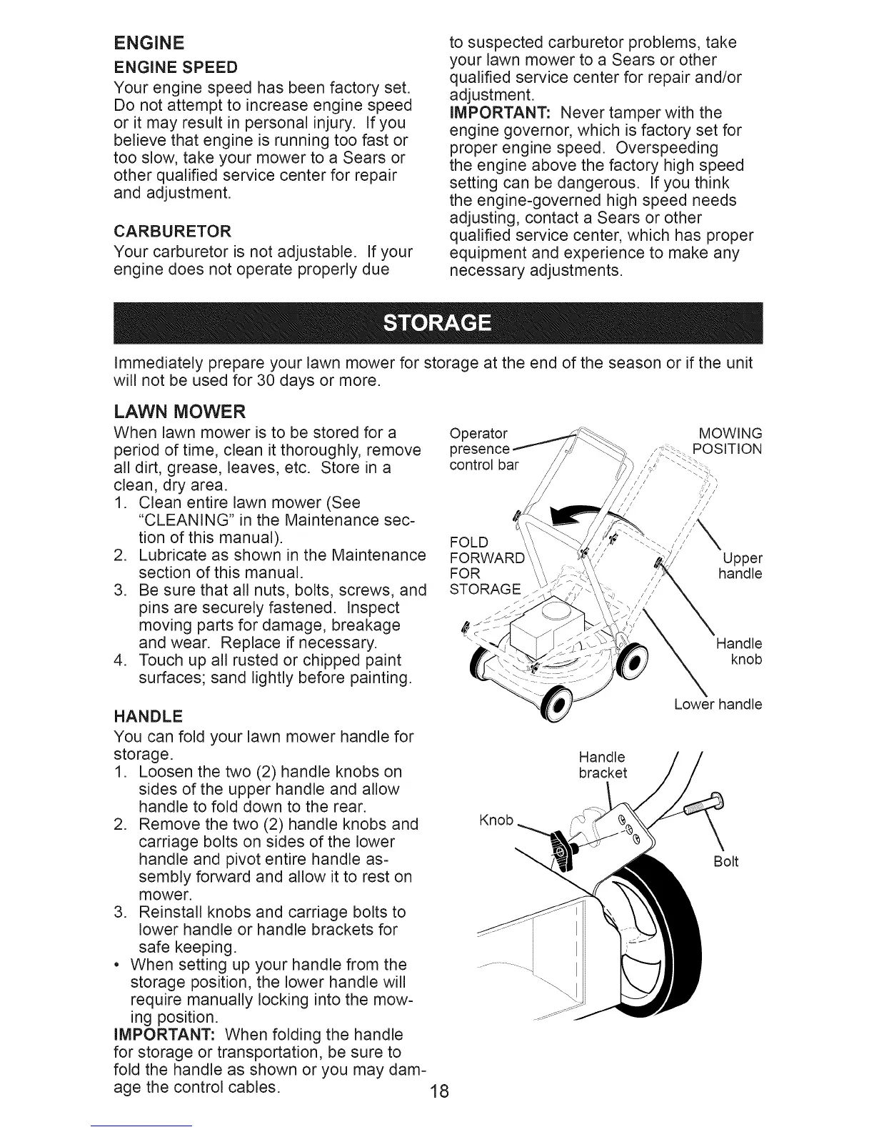 When lawn mower is to be stored for a