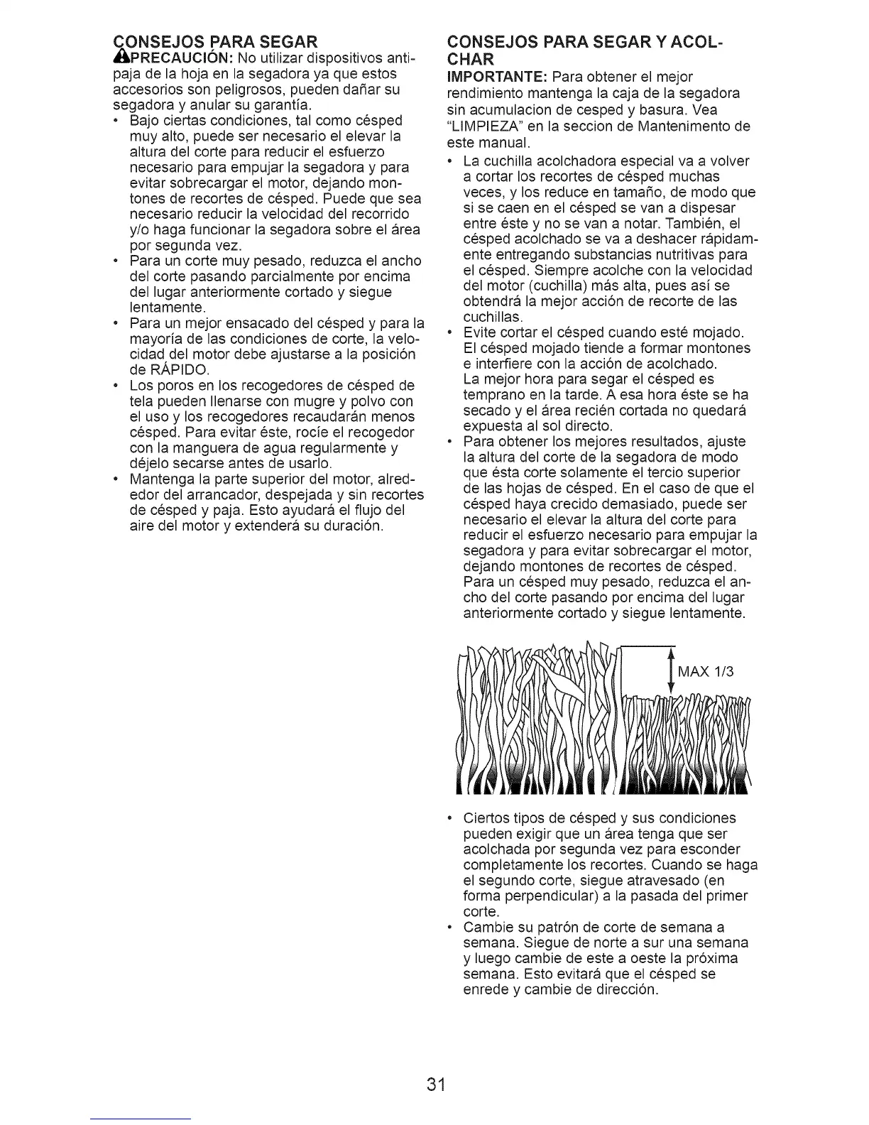 • Evite cortar el cesped cuando este mojado.