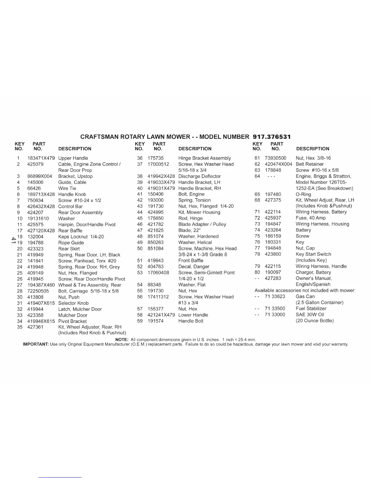 only Original Equipment Manufacturer (O.E.M.) replacement parts. Failure to do so could be hazardous, damage your lawn mower and void your warranty.