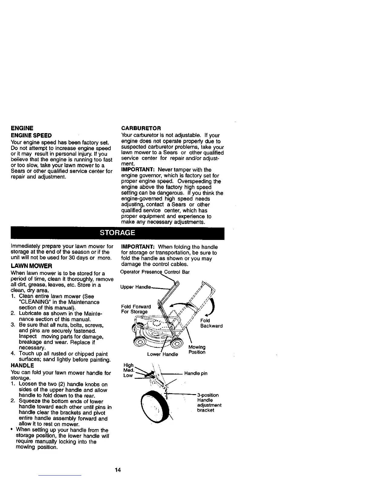 When lawn mower is to be stored for a