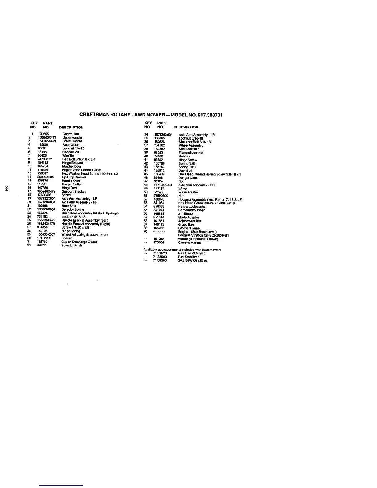 CRAFTSMAN ROTARY LAWN MOWER-- MODEL NO. 917.388731