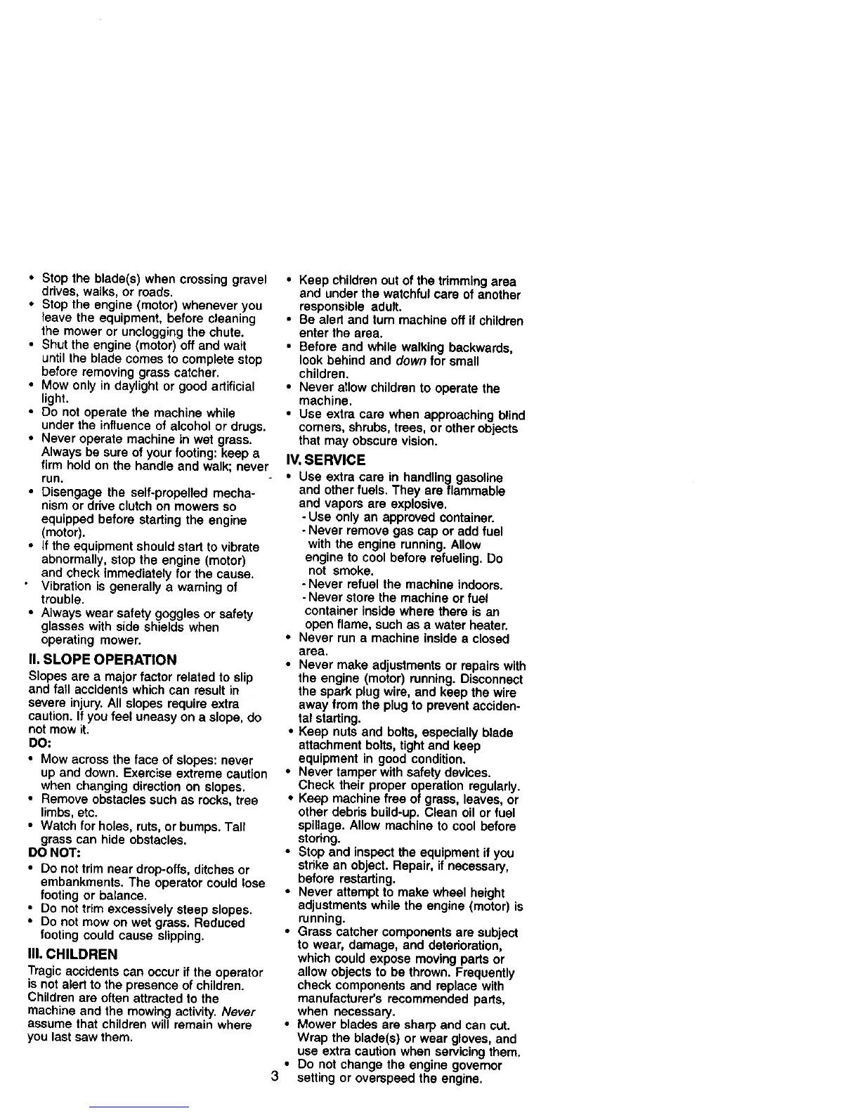 • Mow only in daylight or good artificial
