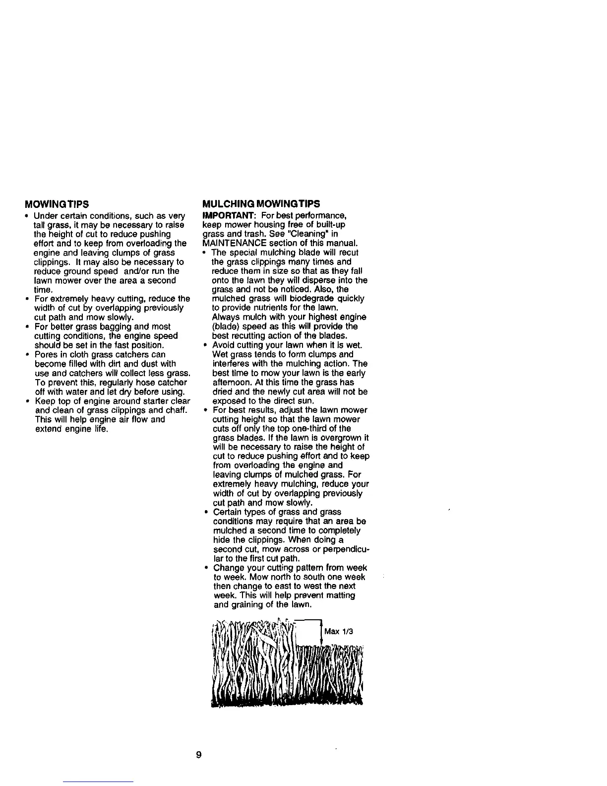 • The special mulching blade will recut