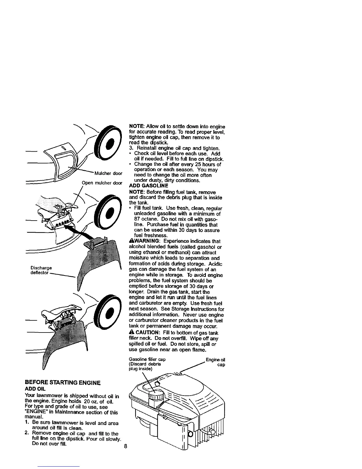 the engine. Engine holds 20 oz. of oil.