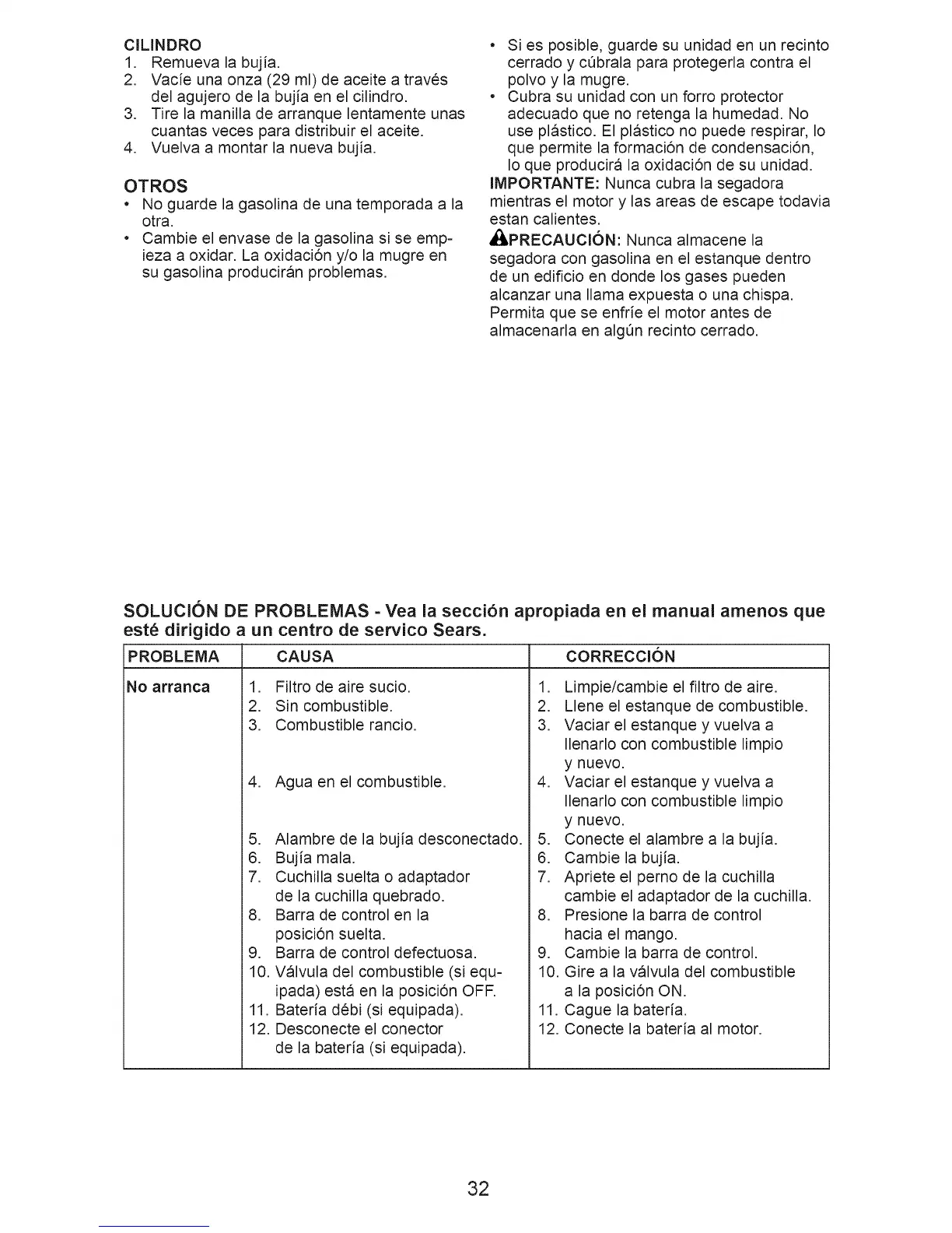 SOLUCION DE PROBLEMAS - Yea la secci6n apropiada en el manual amenos que