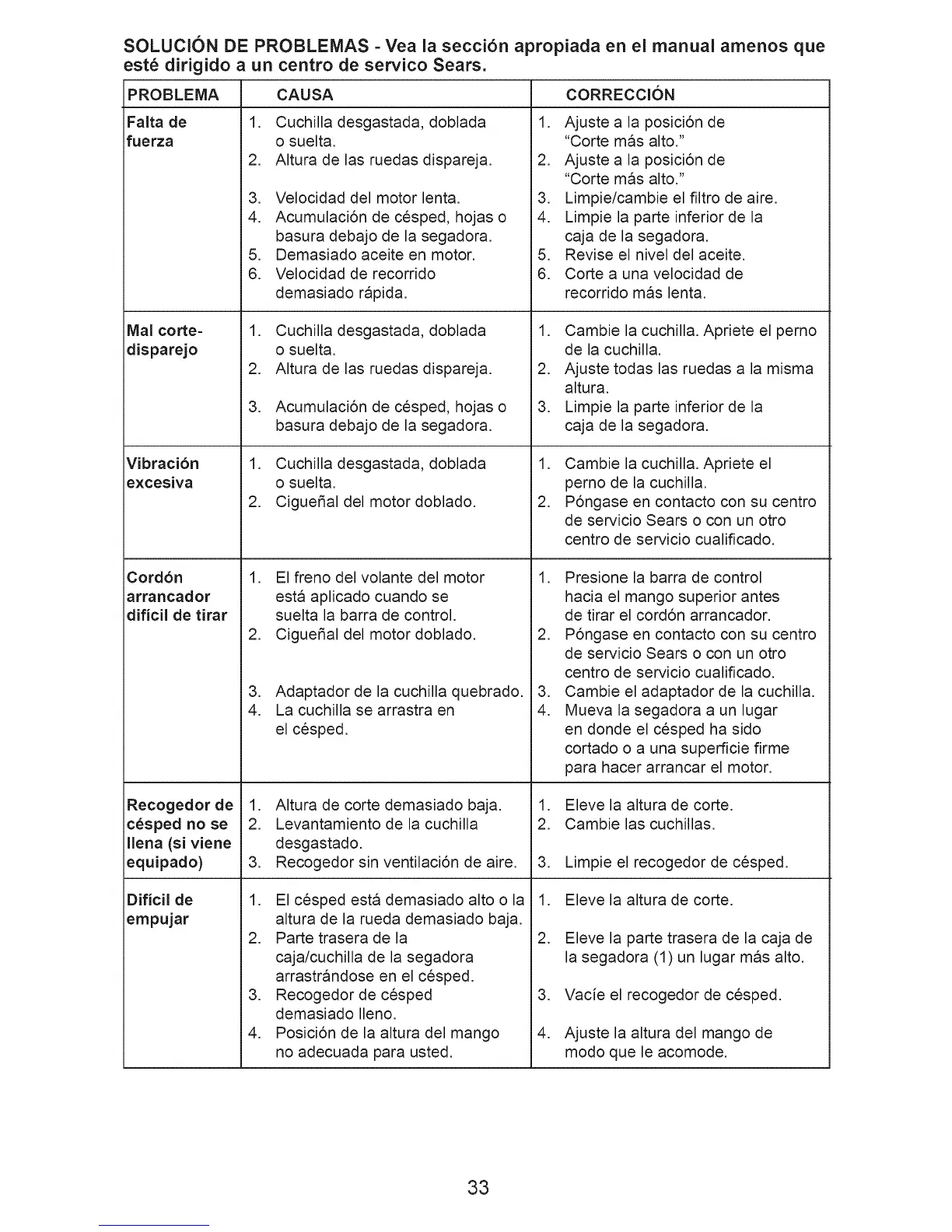 SOLUCION DE PROBLEMAS - Yea la secci6n apropiada en el manual amenos que