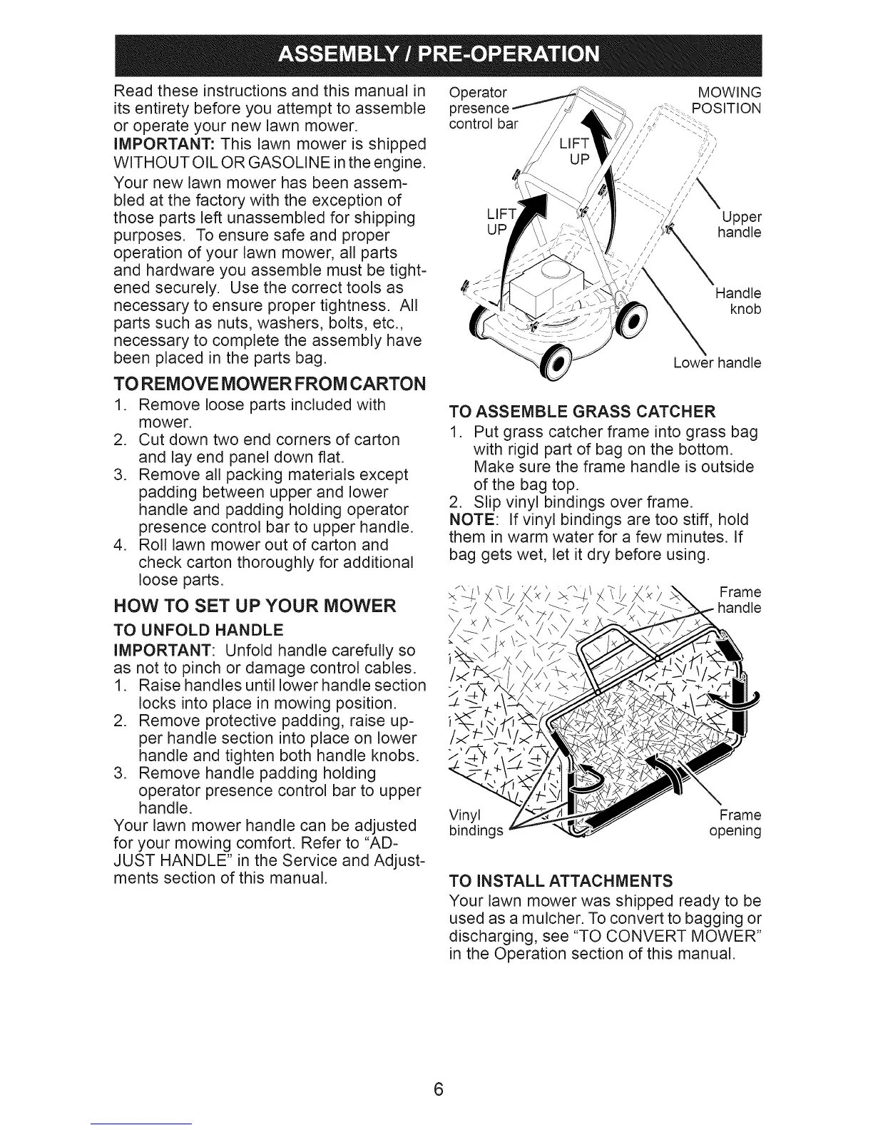 IMPORTANT: This lawn mower is shipped