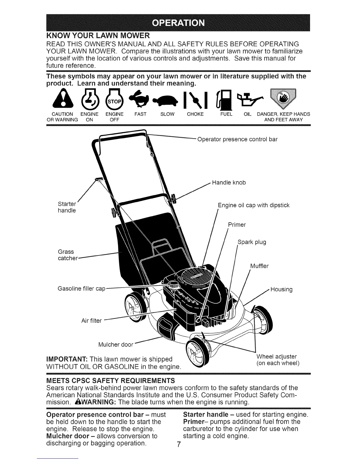 YOUR LAWN MOWER. Compare the illustrations with your lawn mower to familiarize