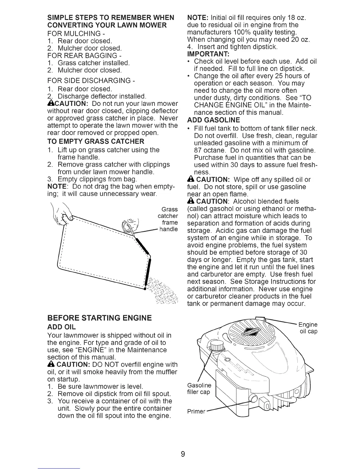 CAUTION: Do not run your lawn mower