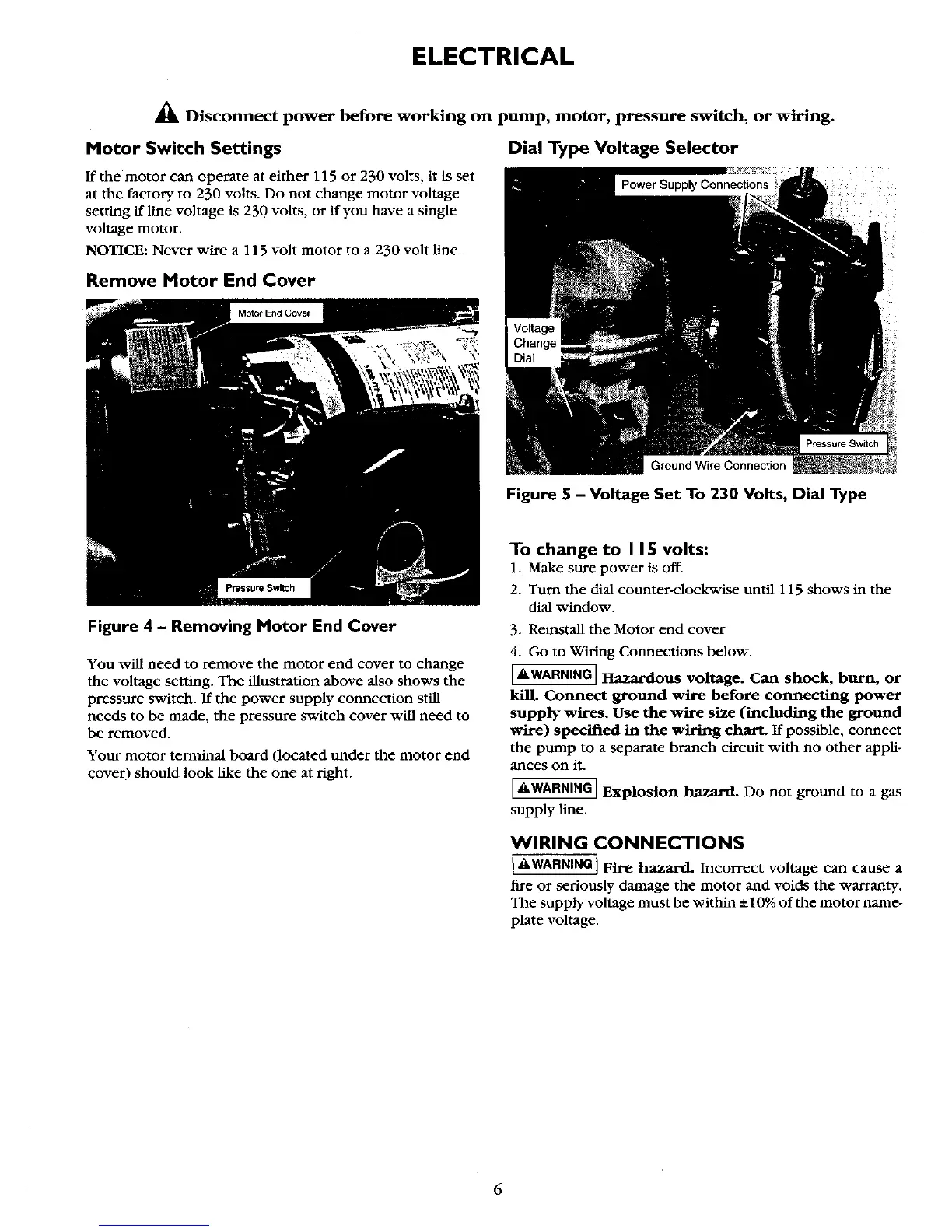 NOTICE: Never wire a 115 volt motor to a 230 volt line.