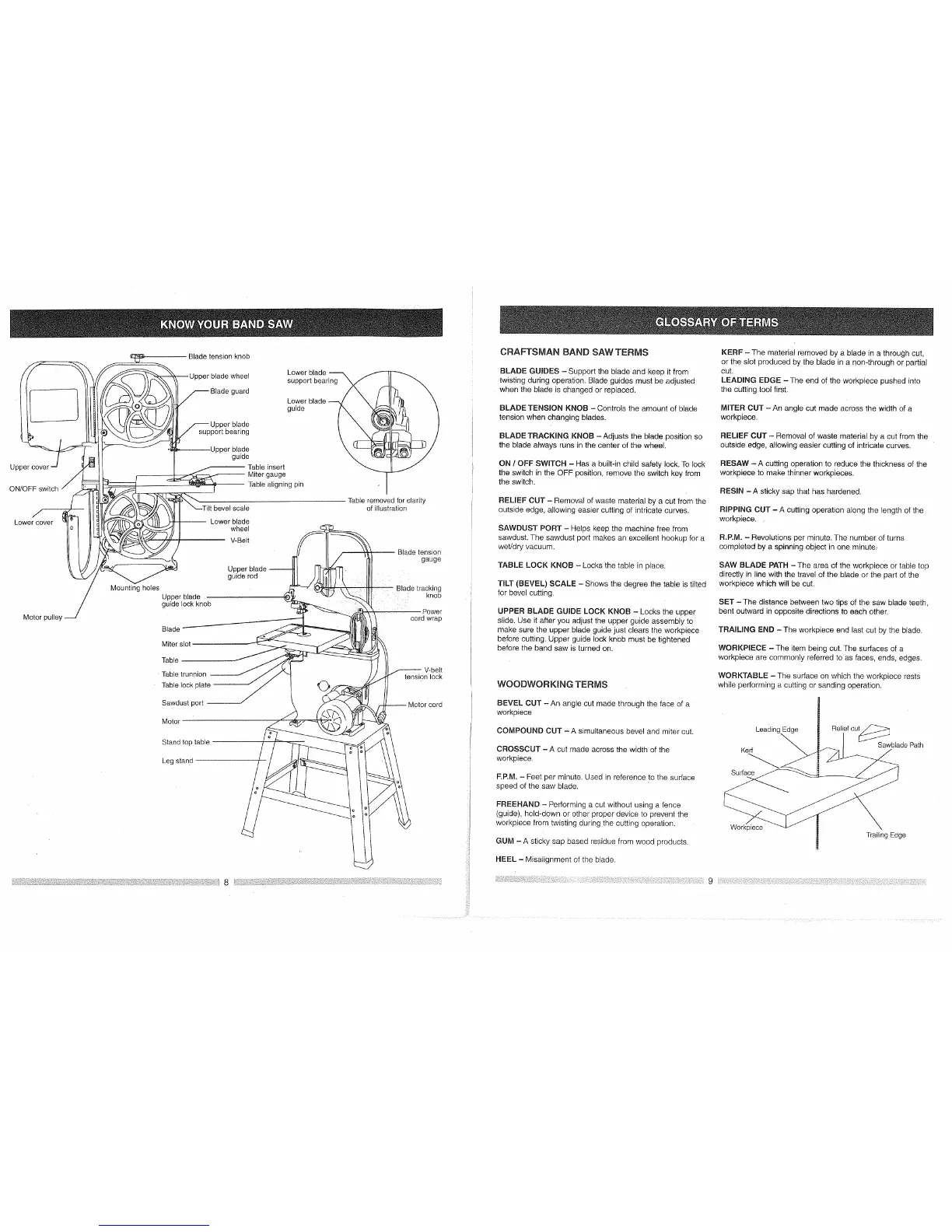 CRAFTSMAN BAND SAW TERMS