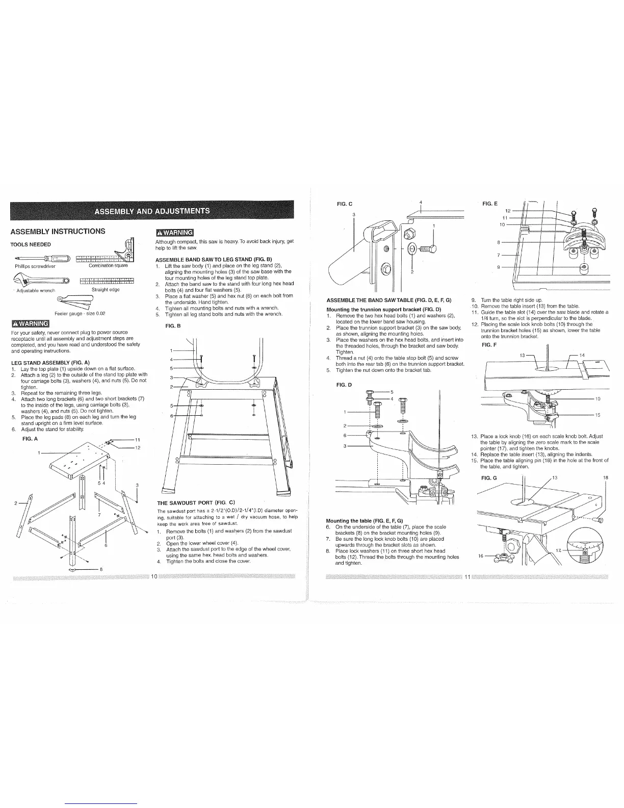 ASSEMBLE BAND SAWTO LEG STAND (FIG. B)