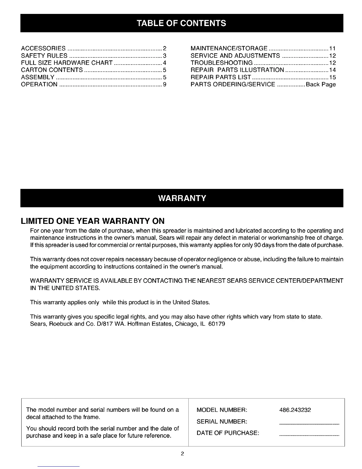 Ifthis spreader is used for commercial or rental purposes, this warranty applies for only 90 days from the date of purchase.