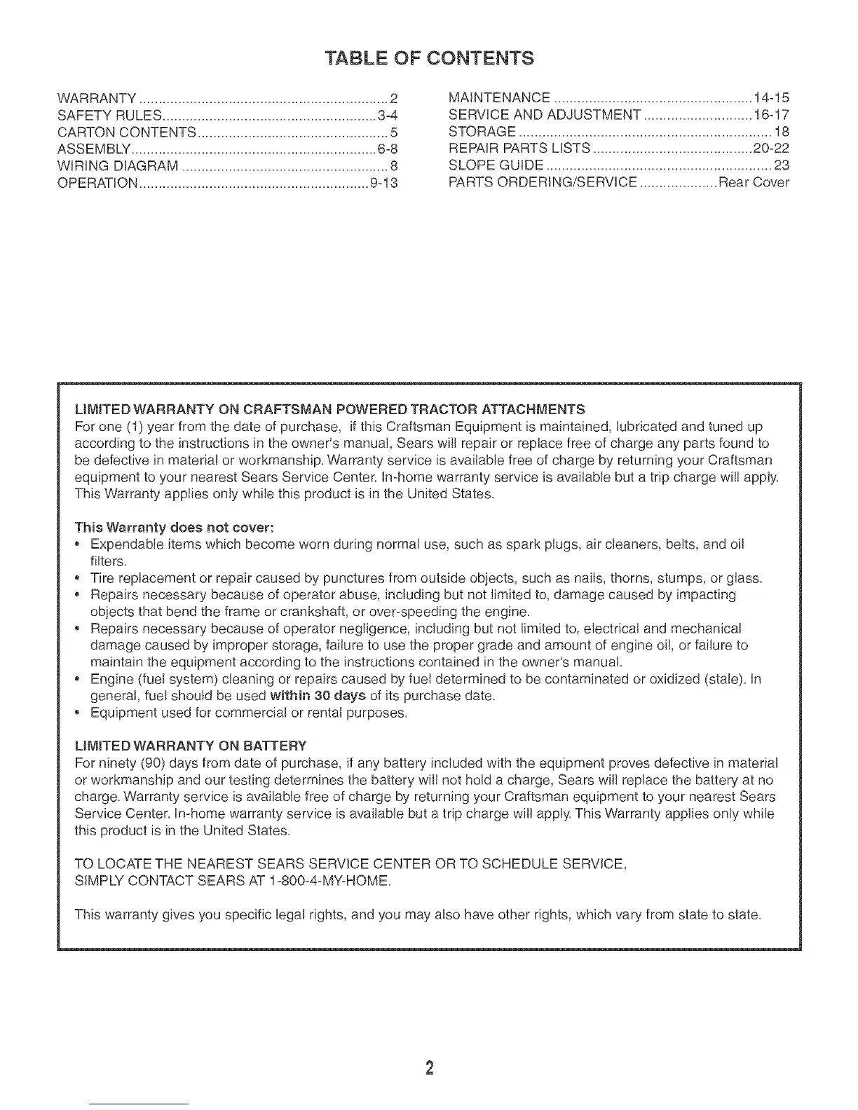 LIMITED WARRANTY ON CRAFTSMAN POWERED TRACTOR ATTACHMENTS