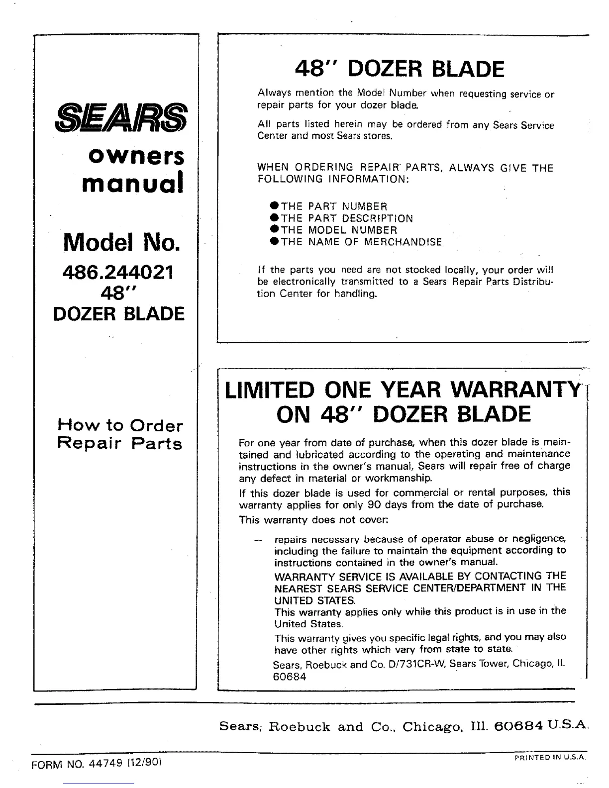 FORM NO. 44749 (12/90) PmNTEDIN U.SA