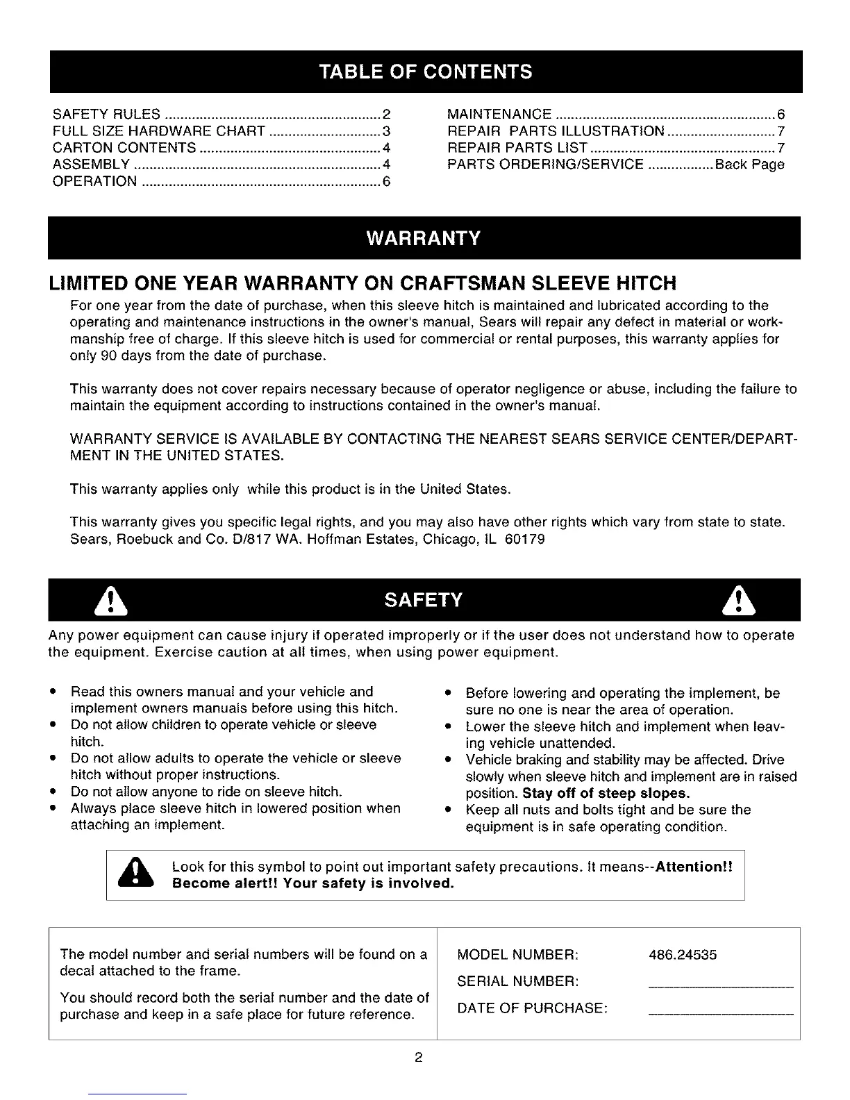 LIMITED ONE YEAR WARRANTY ON CRAFTSMAN SLEEVE HITCH