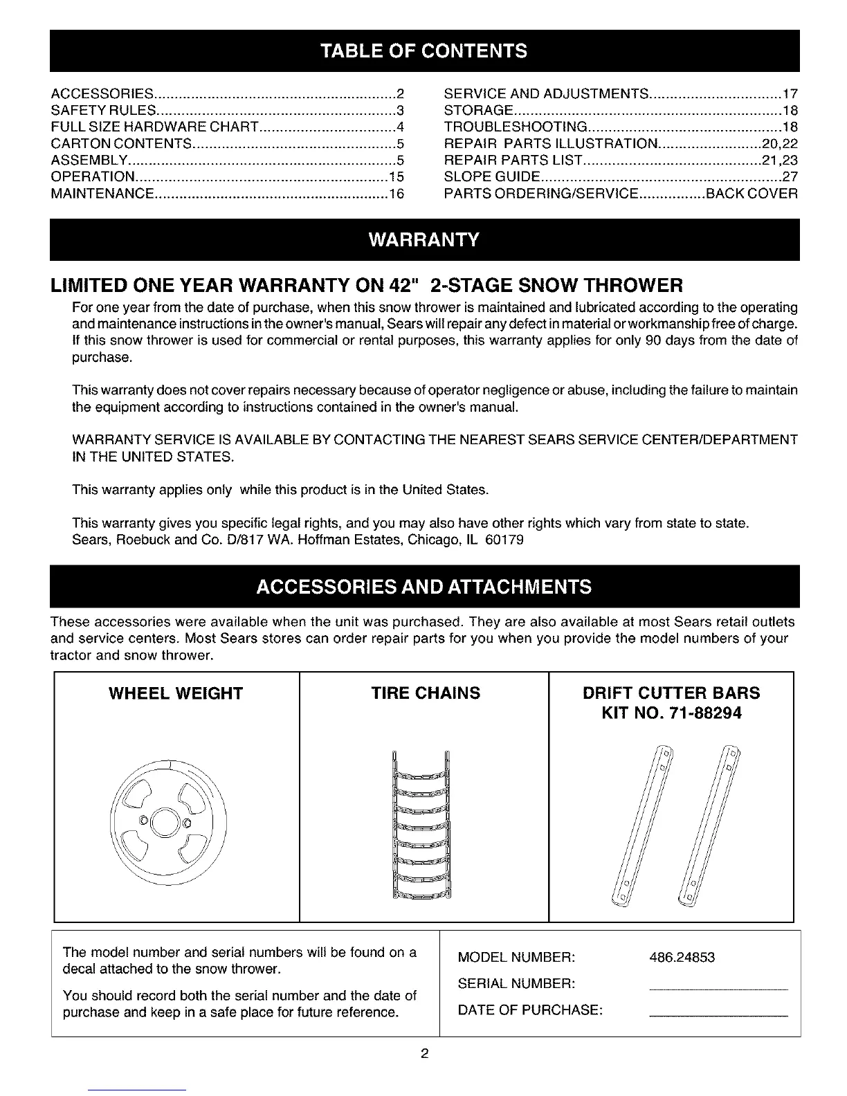 LIMITED ONE YEAR WARRANTY ON 42" 2-STAGE SNOW THROWER