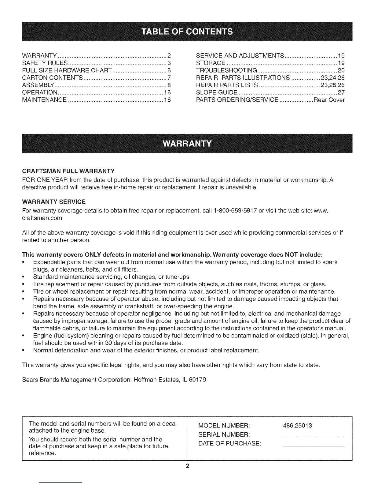 CRAFTSMAN FULL WARRANTY
