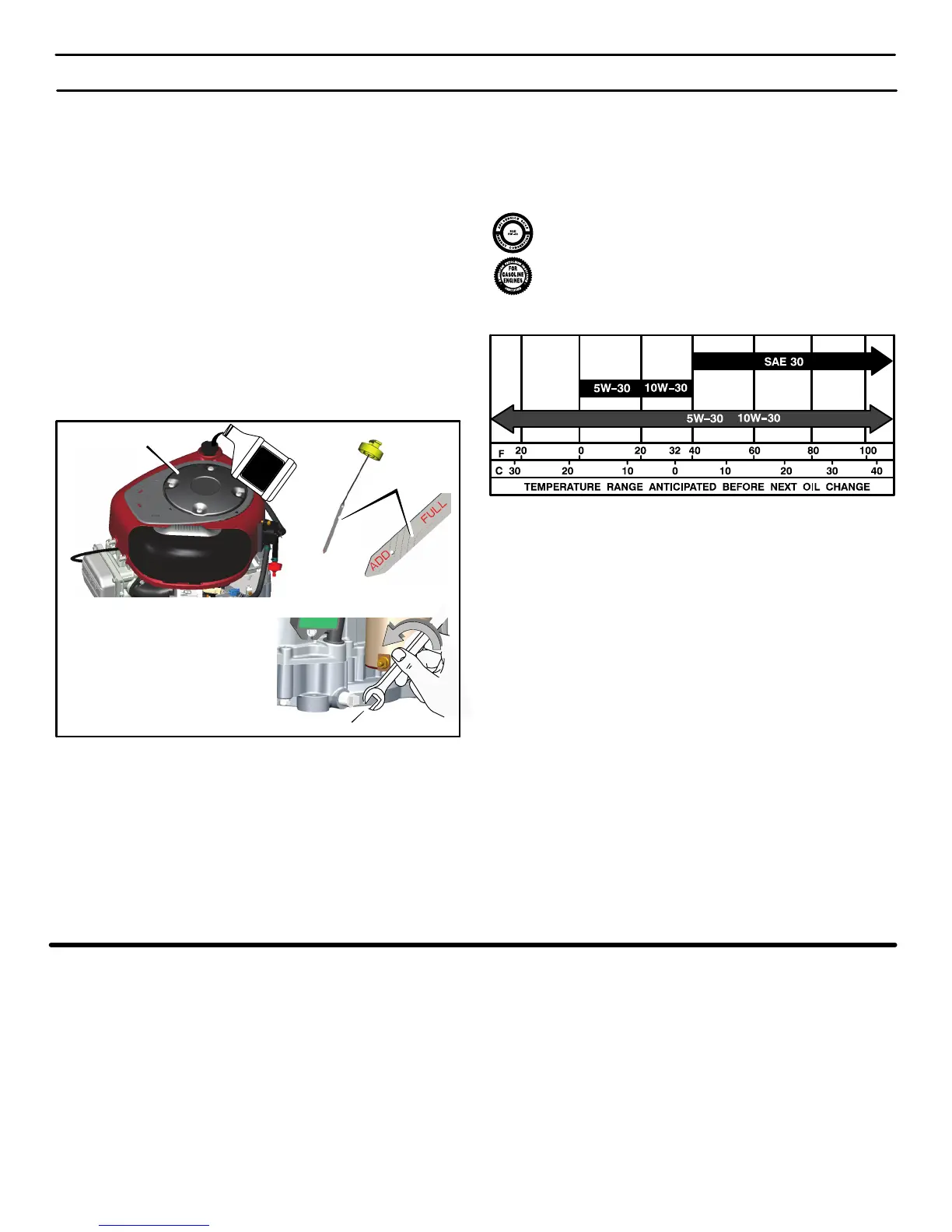 ** CAUTION: SAE 30 oil, if used below 40_ F (4_ C), will result in