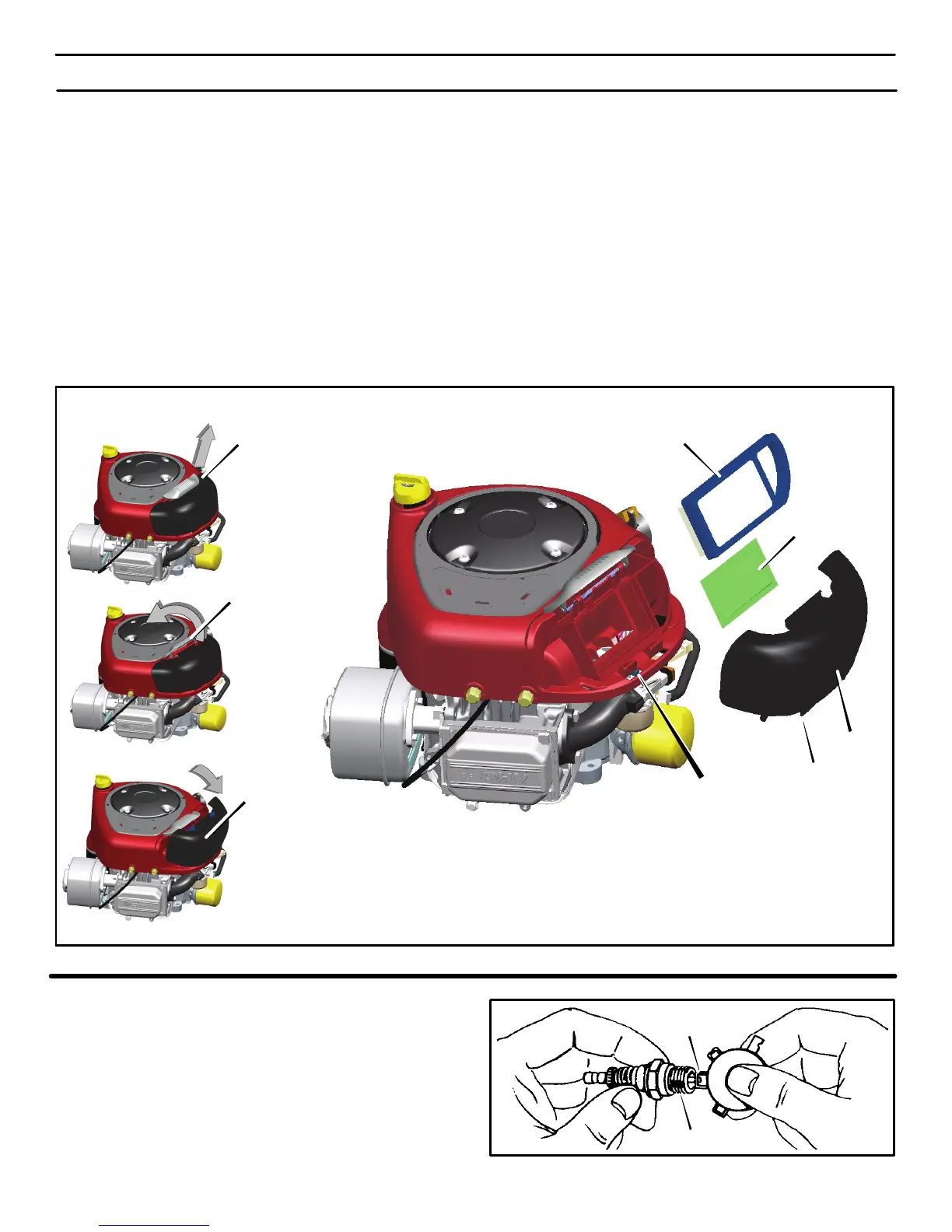 1. Pull up on the handle for the air cleaner cover. Rotate the han-