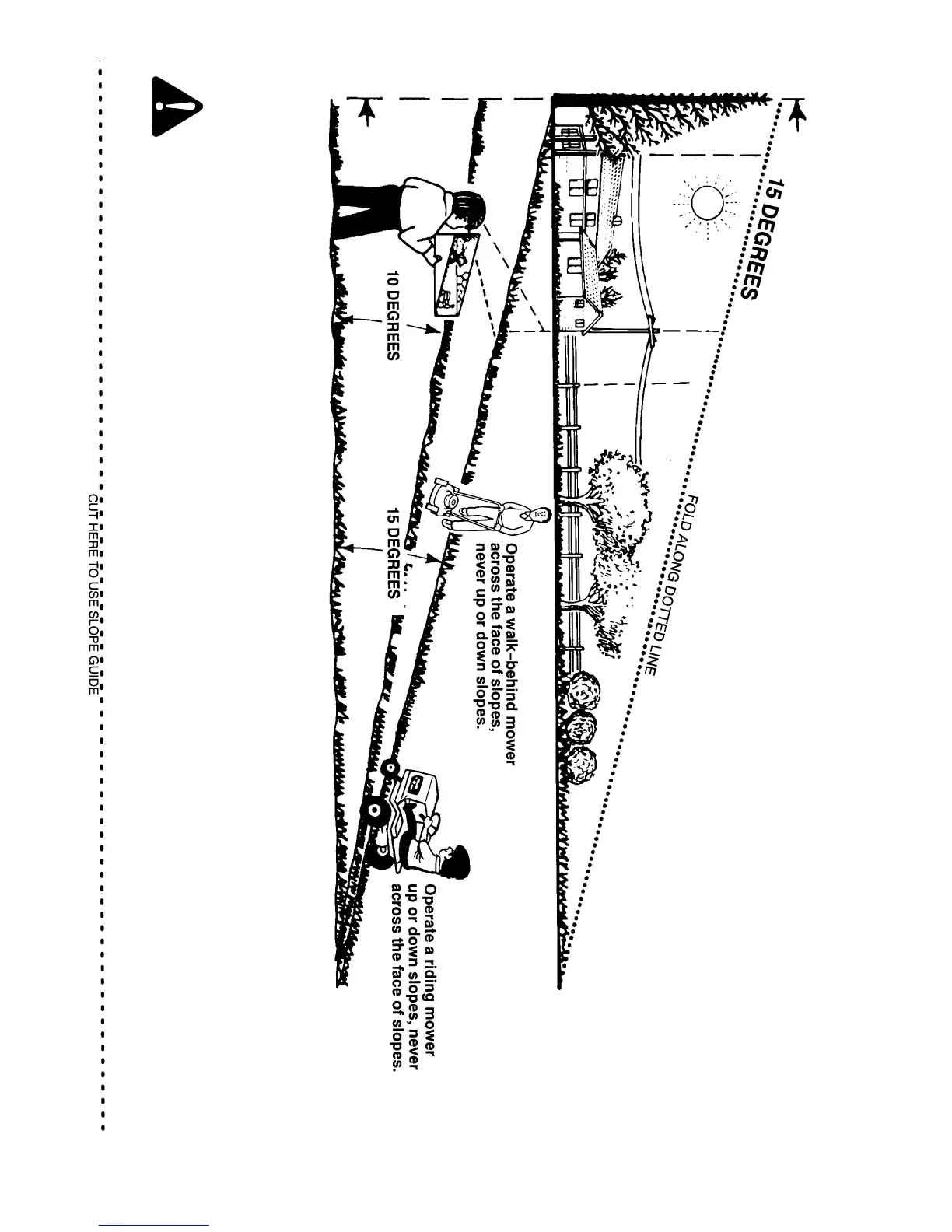 WARNING: To avoid possible serious injury, do not mow a slope that is greater than 15 degrees. If the riding mower is used with a