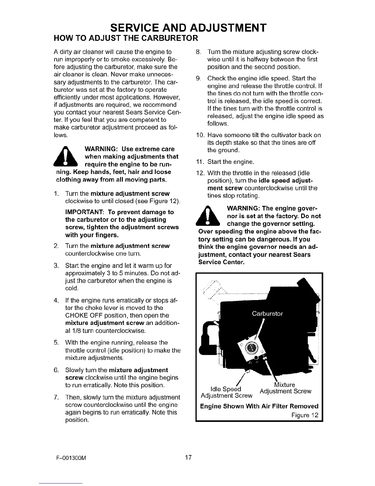 fore adjusting the carburetor, make sure the