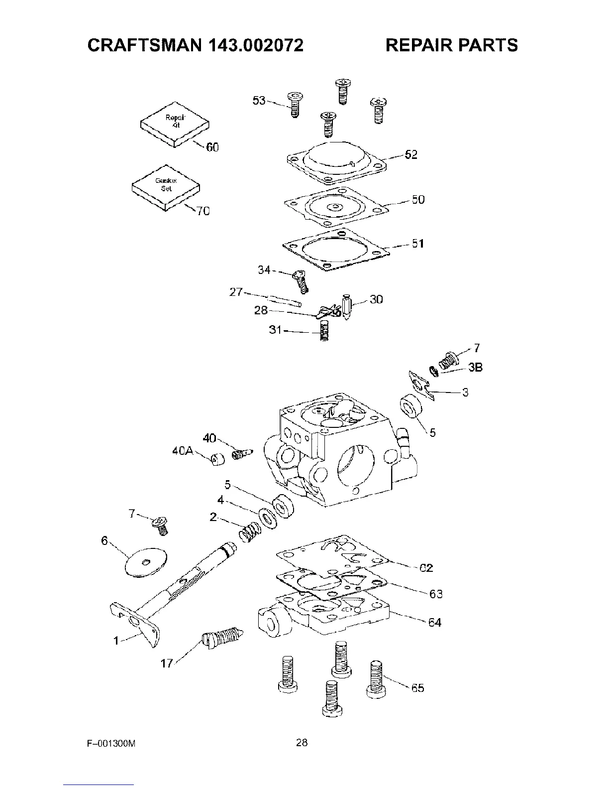 CRAFTSMAN 143.002072 REPAIR PARTS
