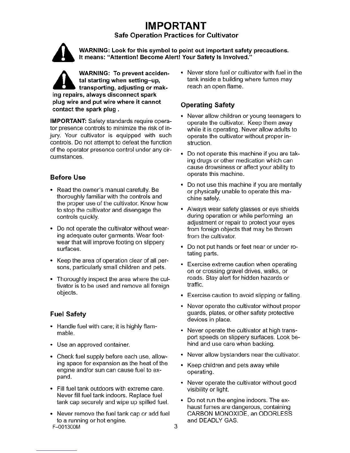 WARNING: Look for this symbol to point out important safety precautions.It means'. "Attention! Become Alert. Your Safety |s Involved.