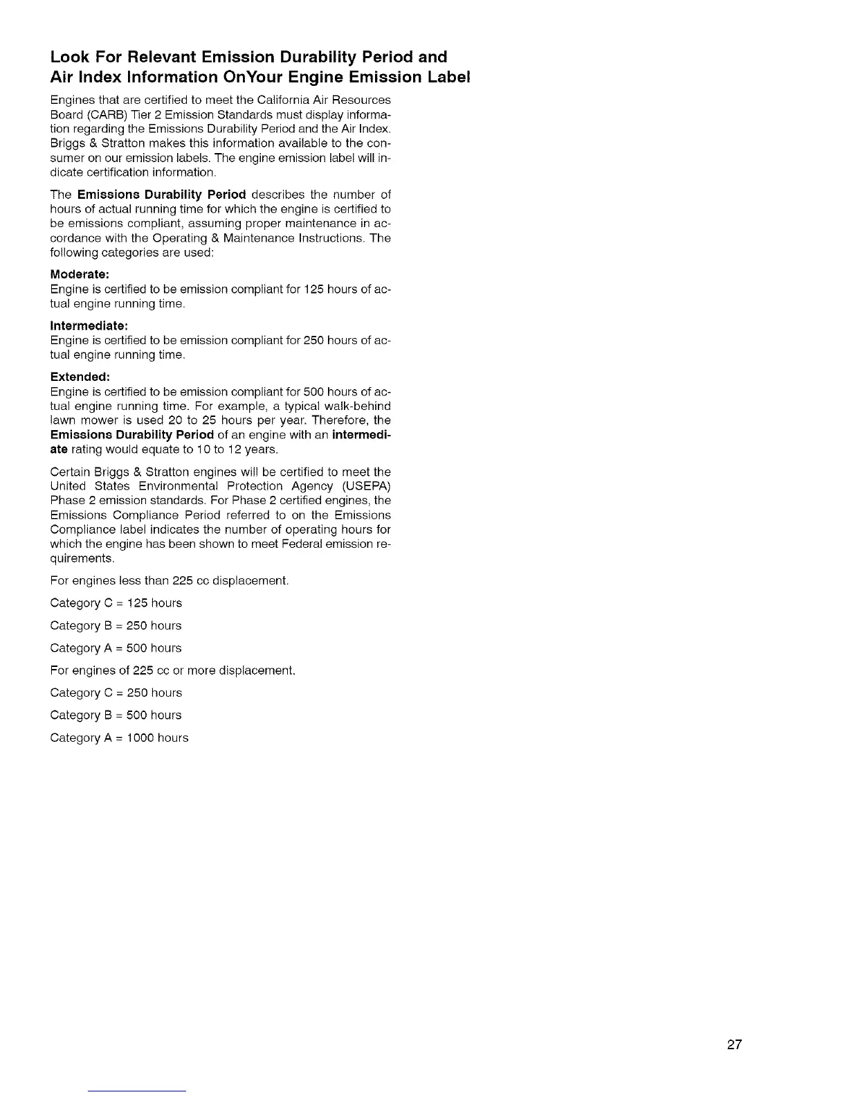 Briggs & Stratton makes this information available to the con-