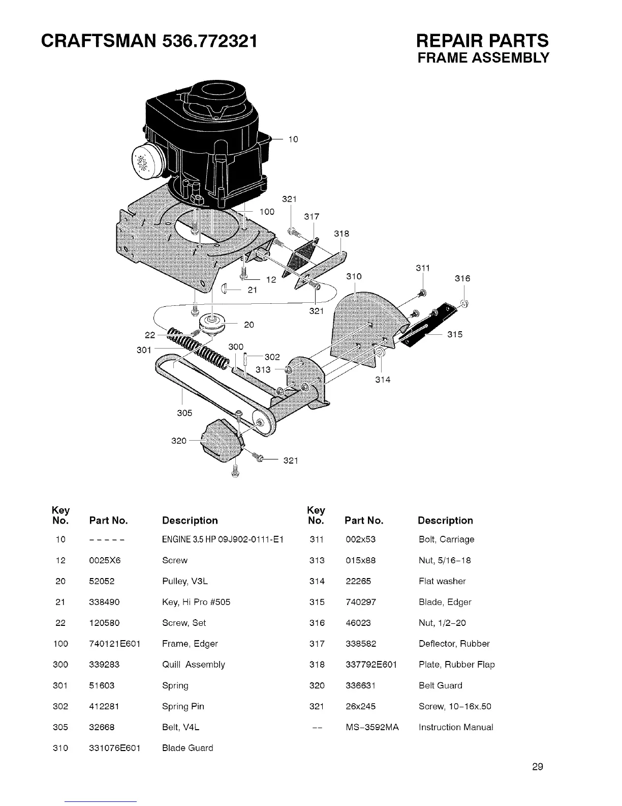 Craftsman 536.772321 - REPAIR PARTS FRAME ASSEMBLY