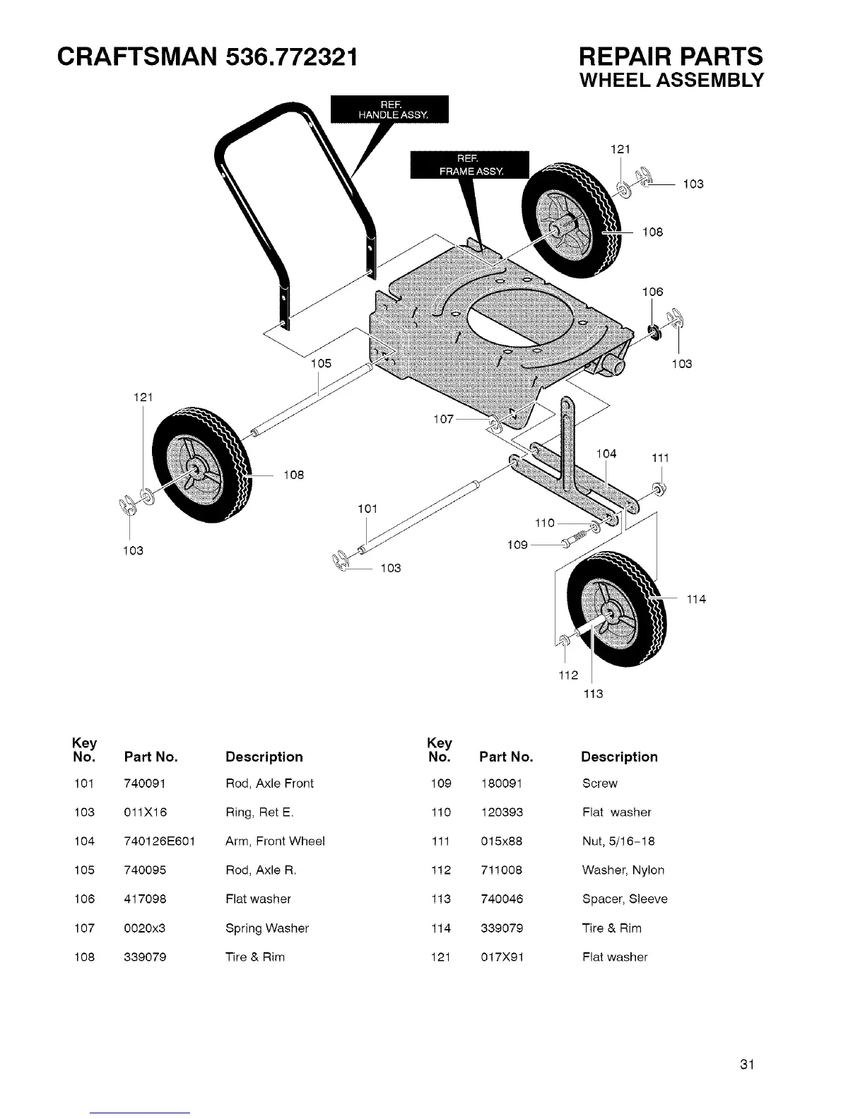 CRAFTSMAN 536.772321 REPAIR PARTS