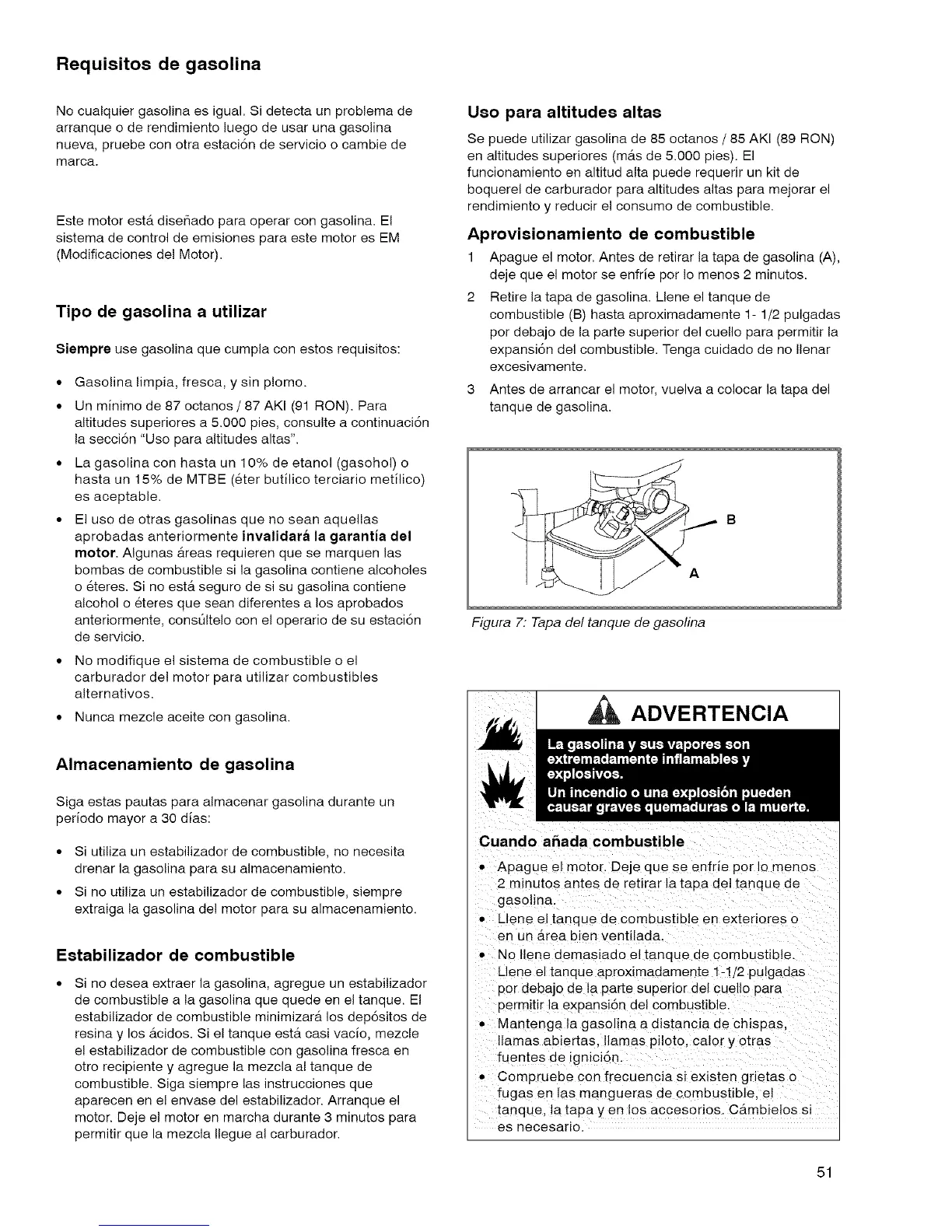 Este motor est& dise_ado para operar con gasolina. El