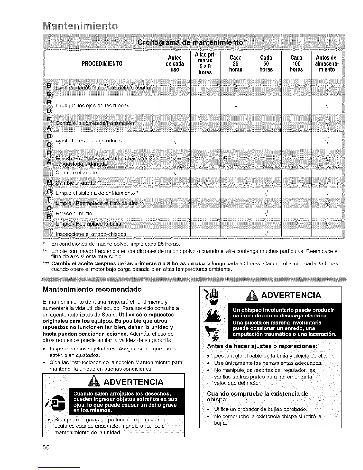 *** Cambie el aceite despues de las primeras 5 a 8 hora8 de u8o, y luego cada 50 horas. Cambie el aceite cada 25 horas