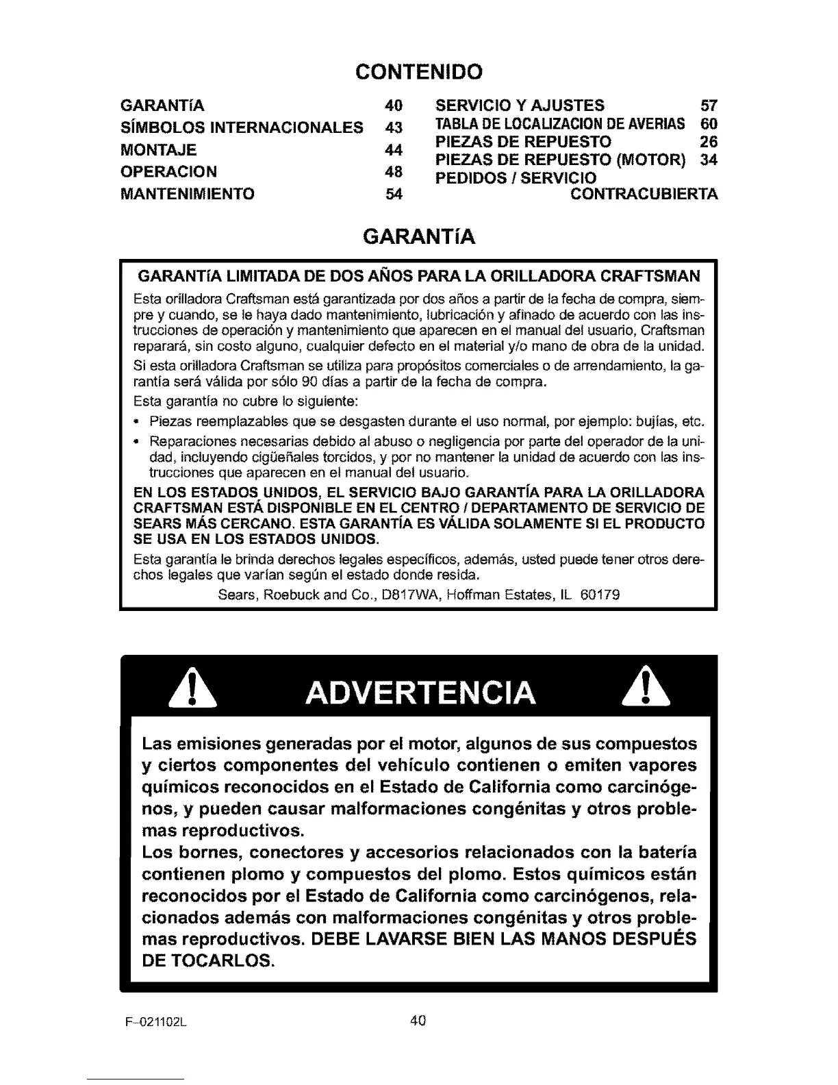 trucciones de operaci6n y mantenimiento que aparecen en el manual del usuado, Craftsman