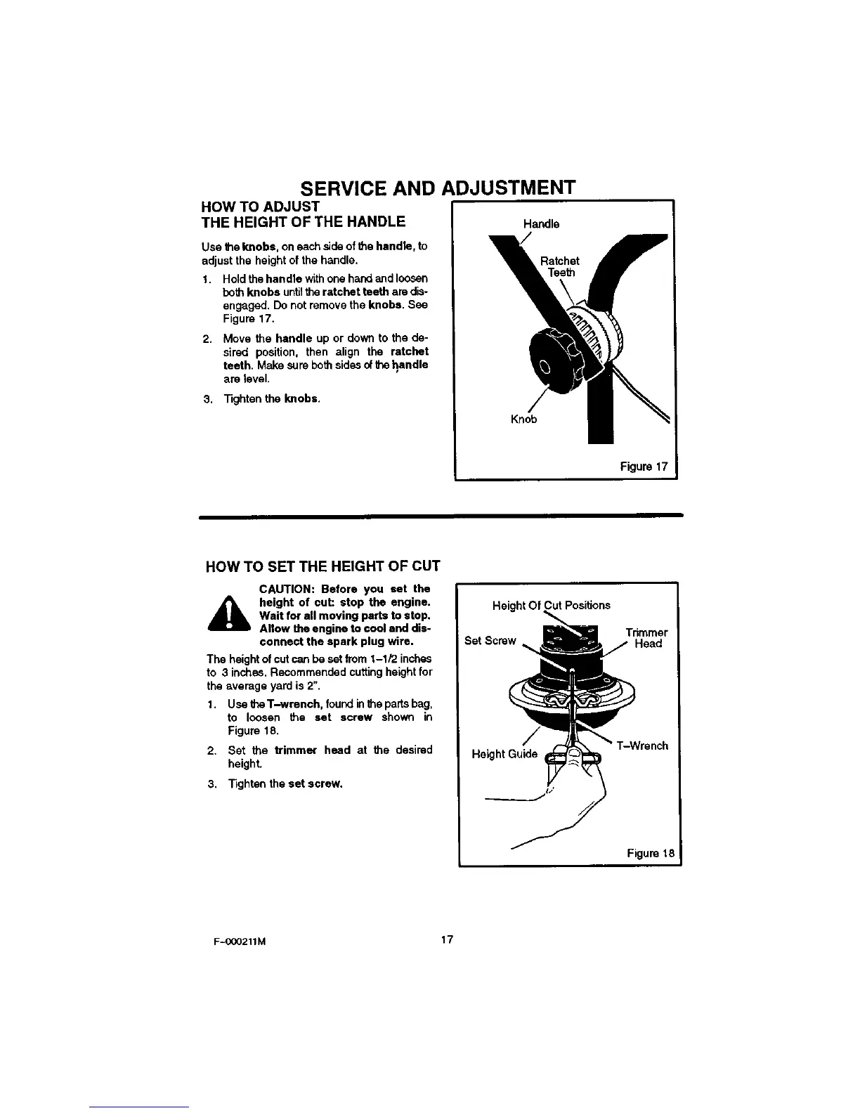 _lb height of cut: stop the engine.