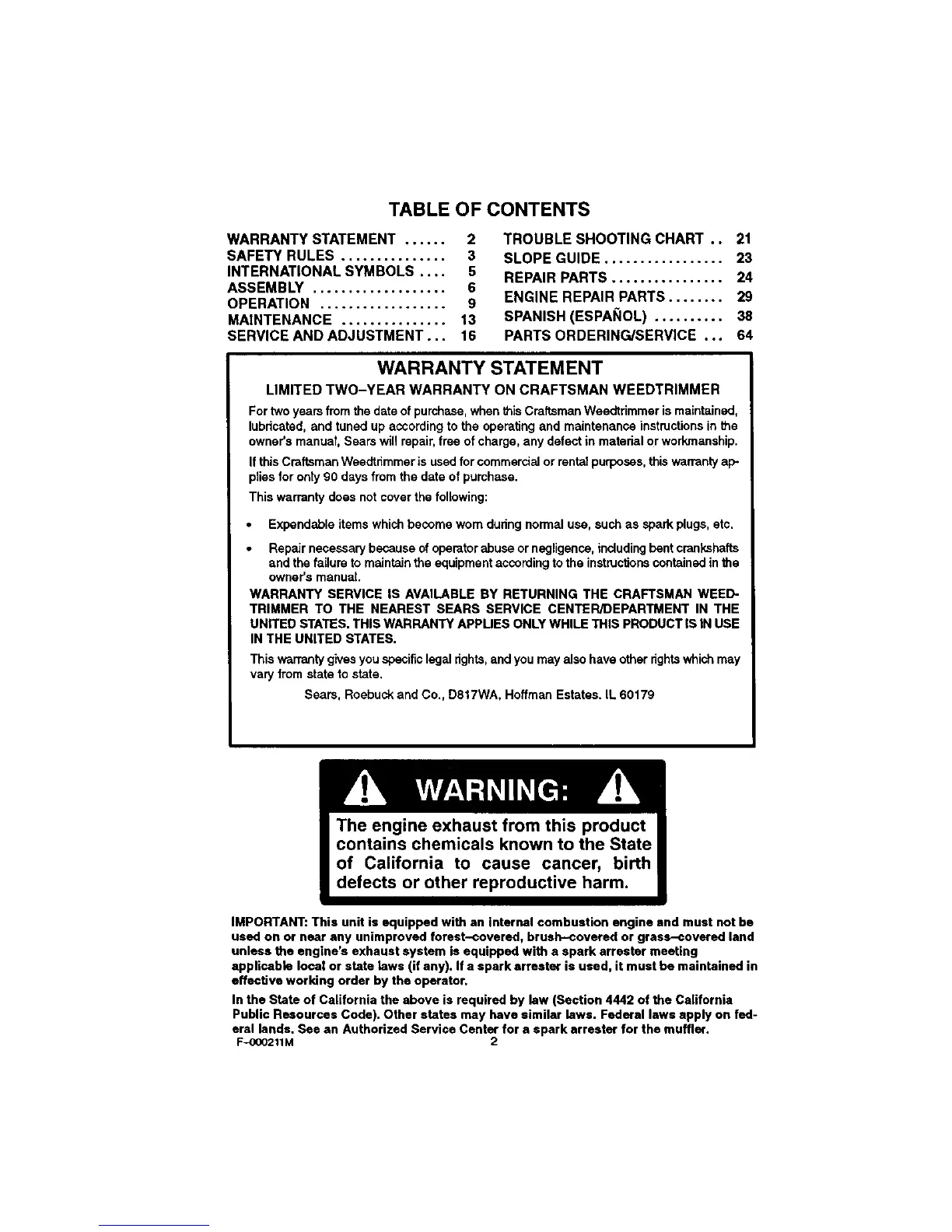 WARRANTY STATEMENT ...... 2