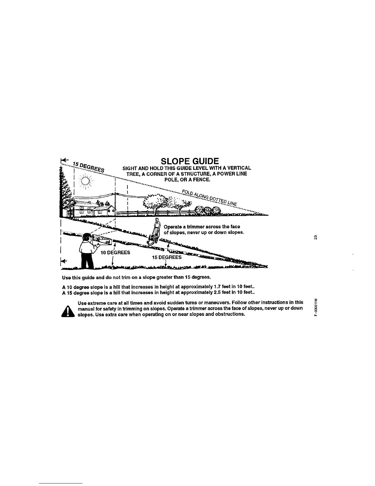 _ manual for safety in trimming on slopes. Operate a trimmer across the face of slopes, never up or down