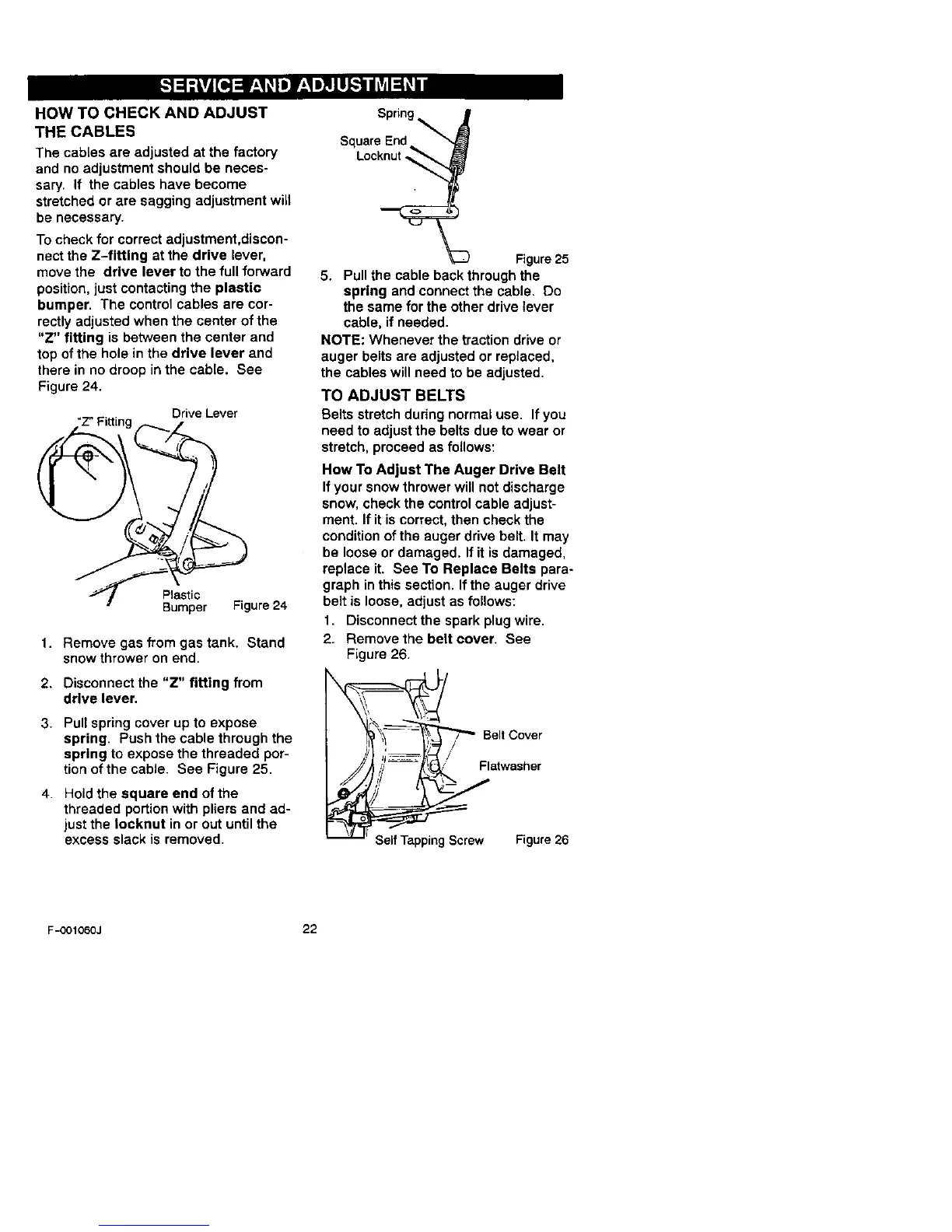 auger belts are adjusted or replaced,