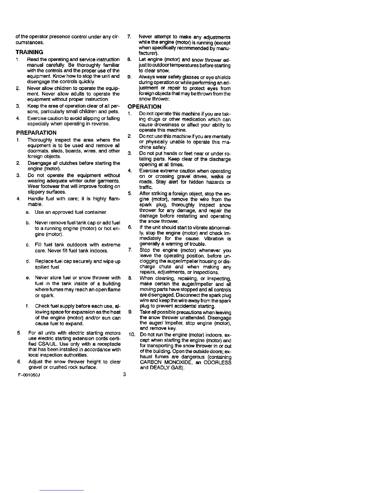 10. Do notrun the engine (motor) indoors, ex-