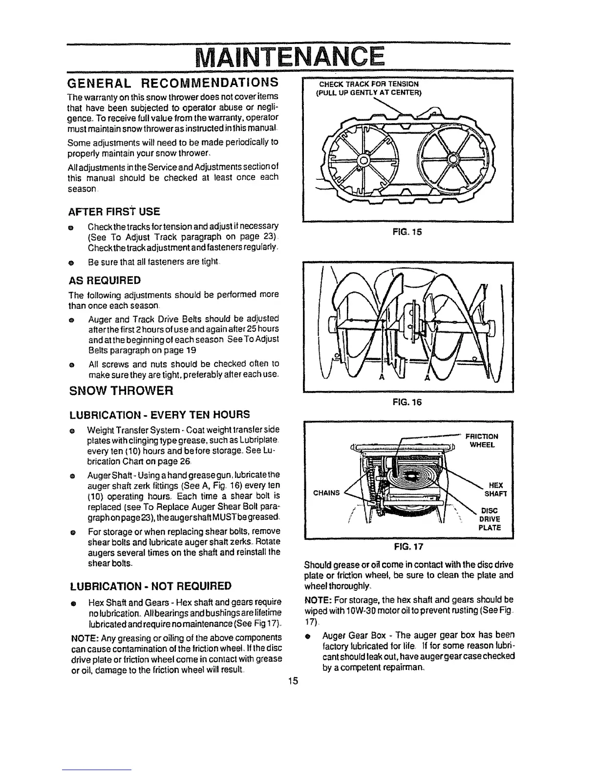 e Auger and Track Drive Belts shouid be adjusted