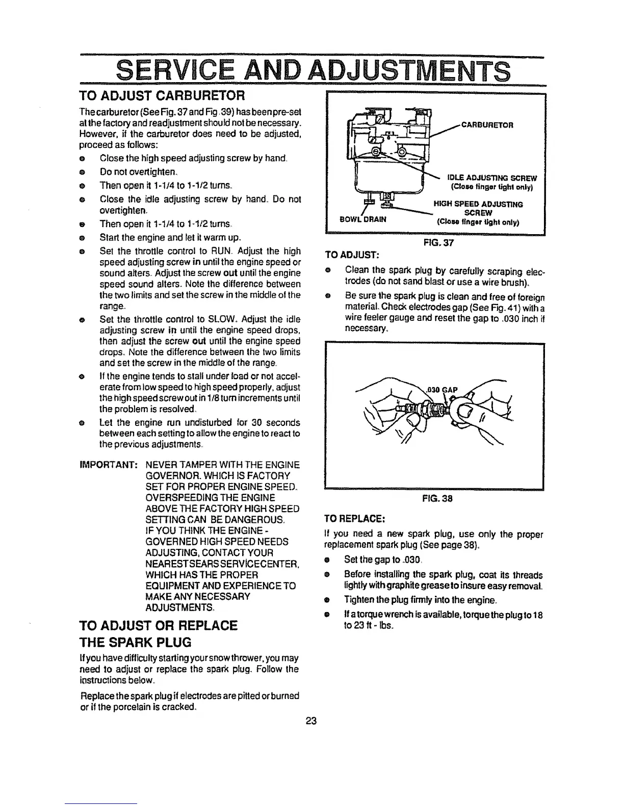 replacementspark plug (See page 38),,