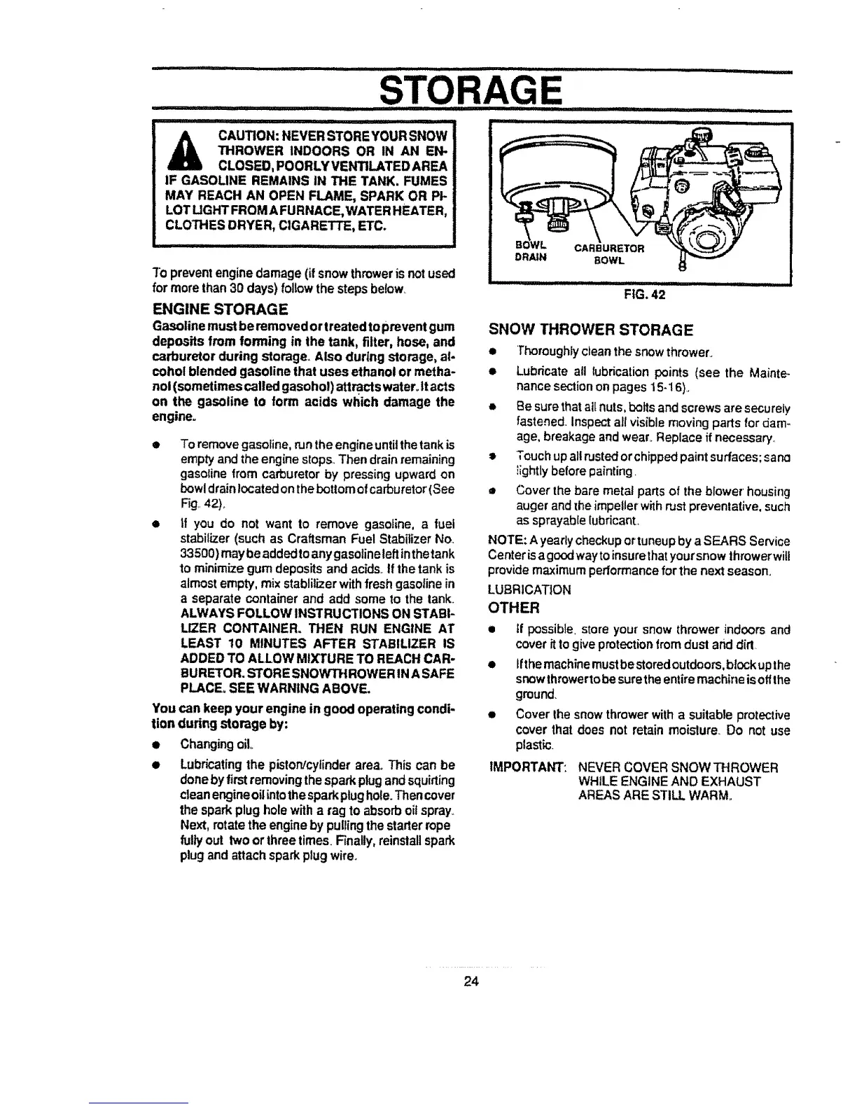 carburetor during storage. Also during storage, al-