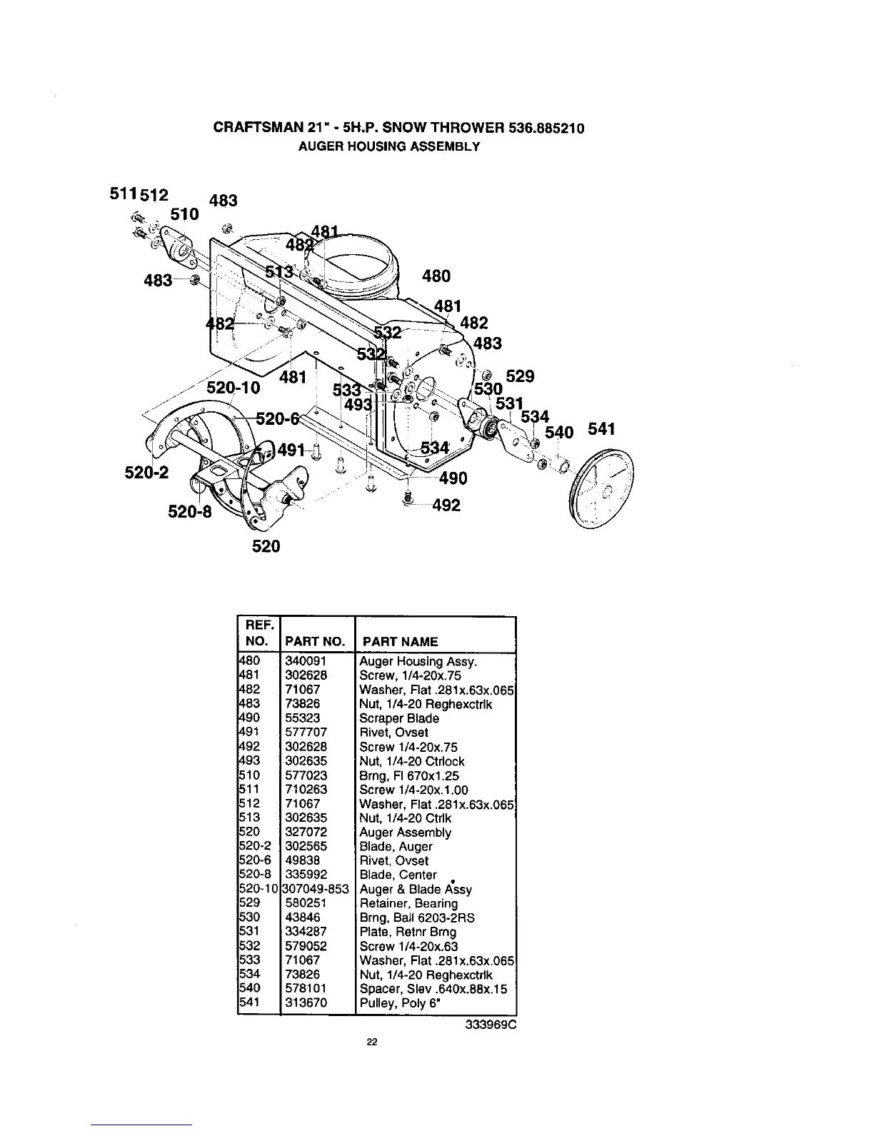 CRAFTSMAN 21" - 5H.P. SNOW THROWER 536.885210