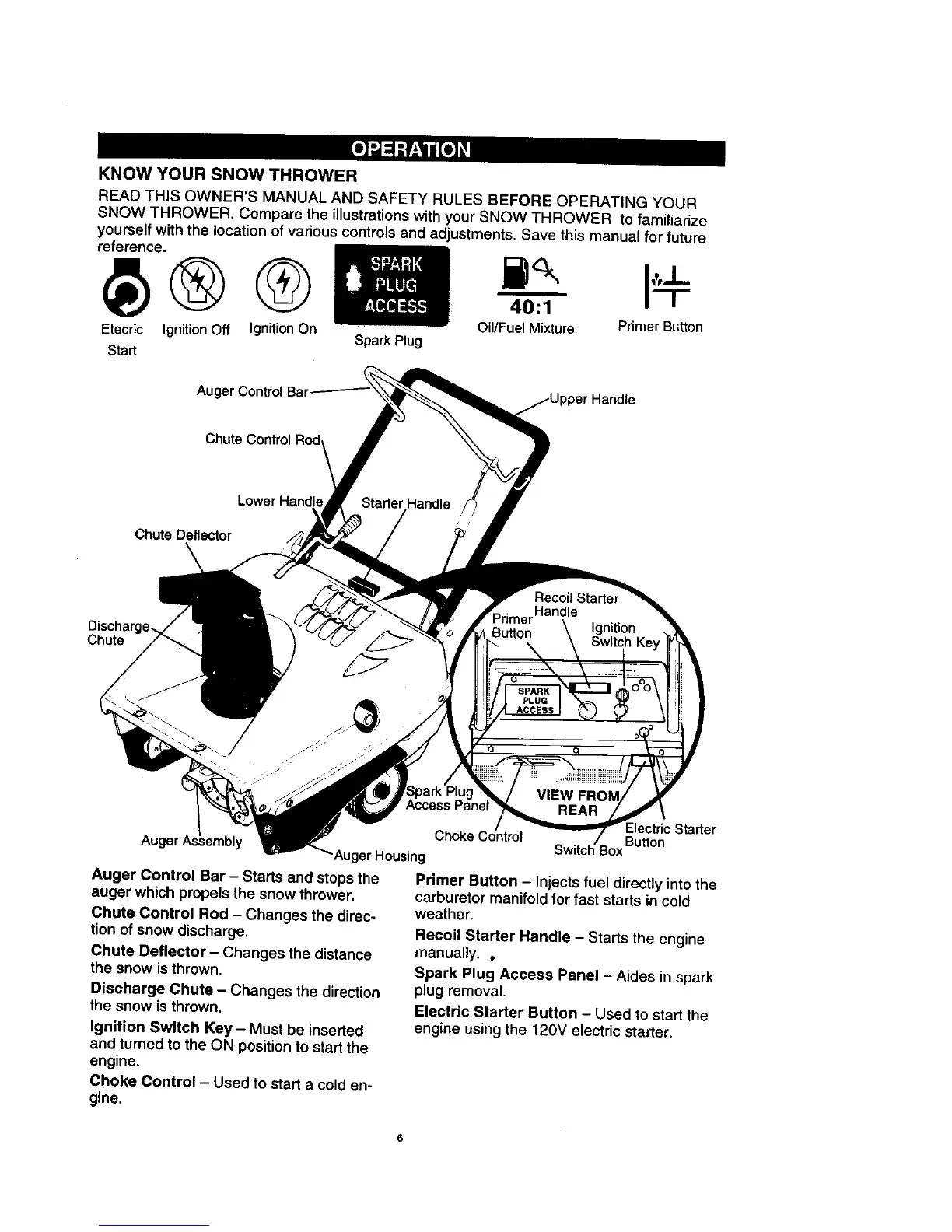 SNOW THROWER. Compare the illustrations with your SNOW THROWER to familiarize