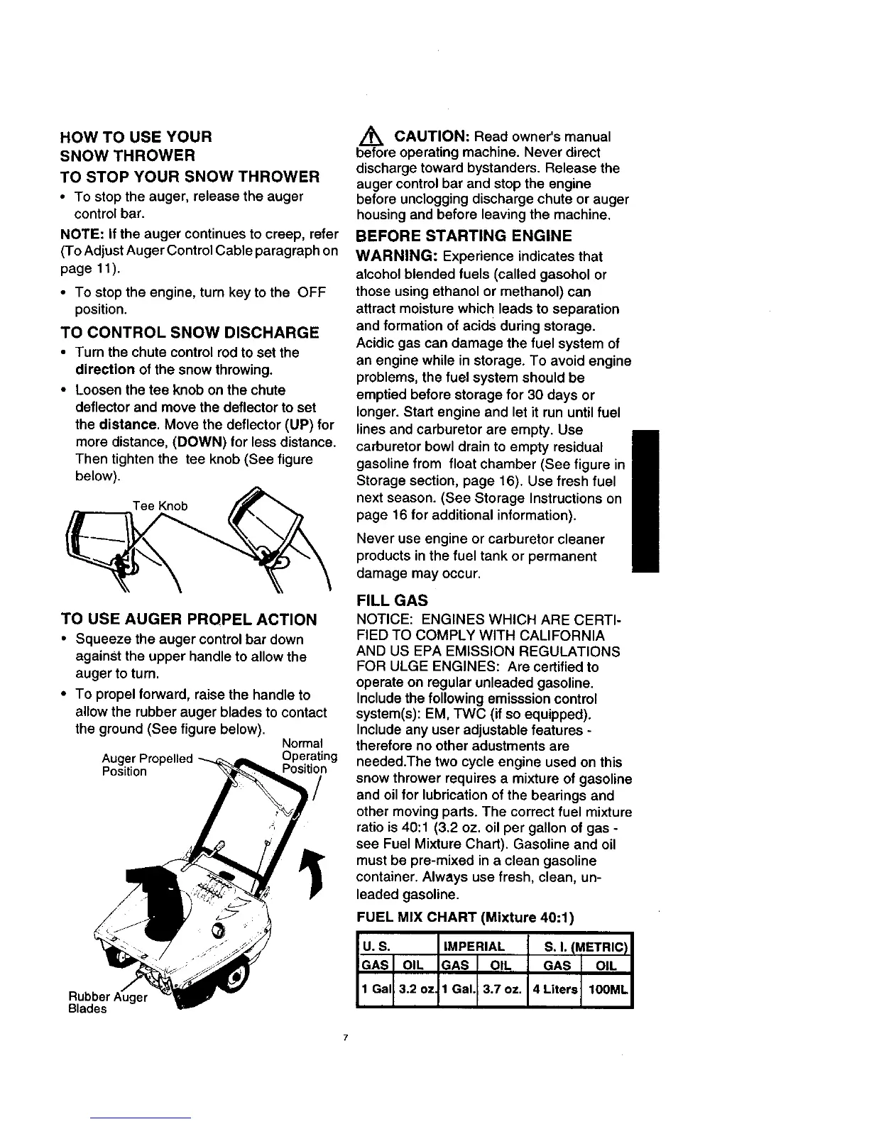 see Fuel Mixture Chart). Gasoline and oil