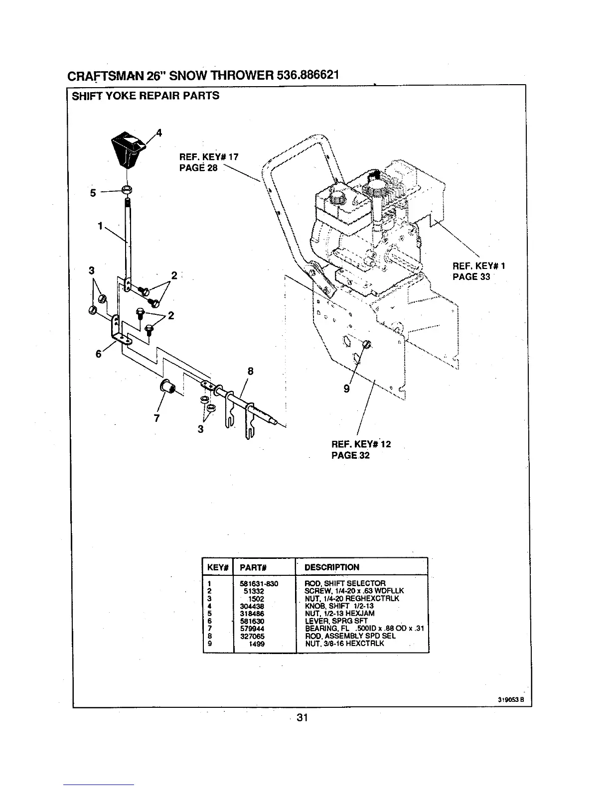 Craftsman 536.886621 - Shift Yoke Repair Parts