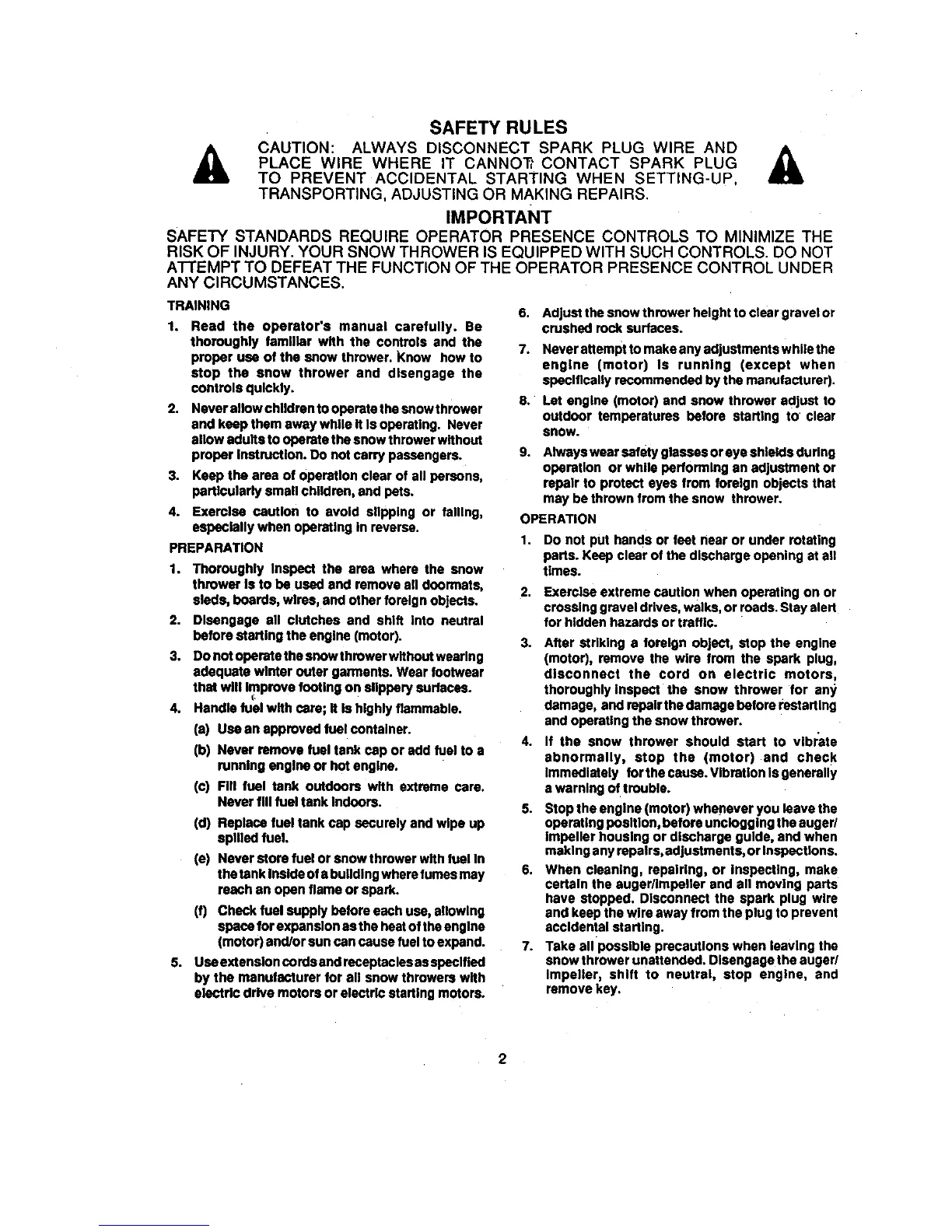 RISK OF INJURY. YOUR SNOW THROWER IS EQUIPPED WITH SUCH CONTROLS. DO NOT