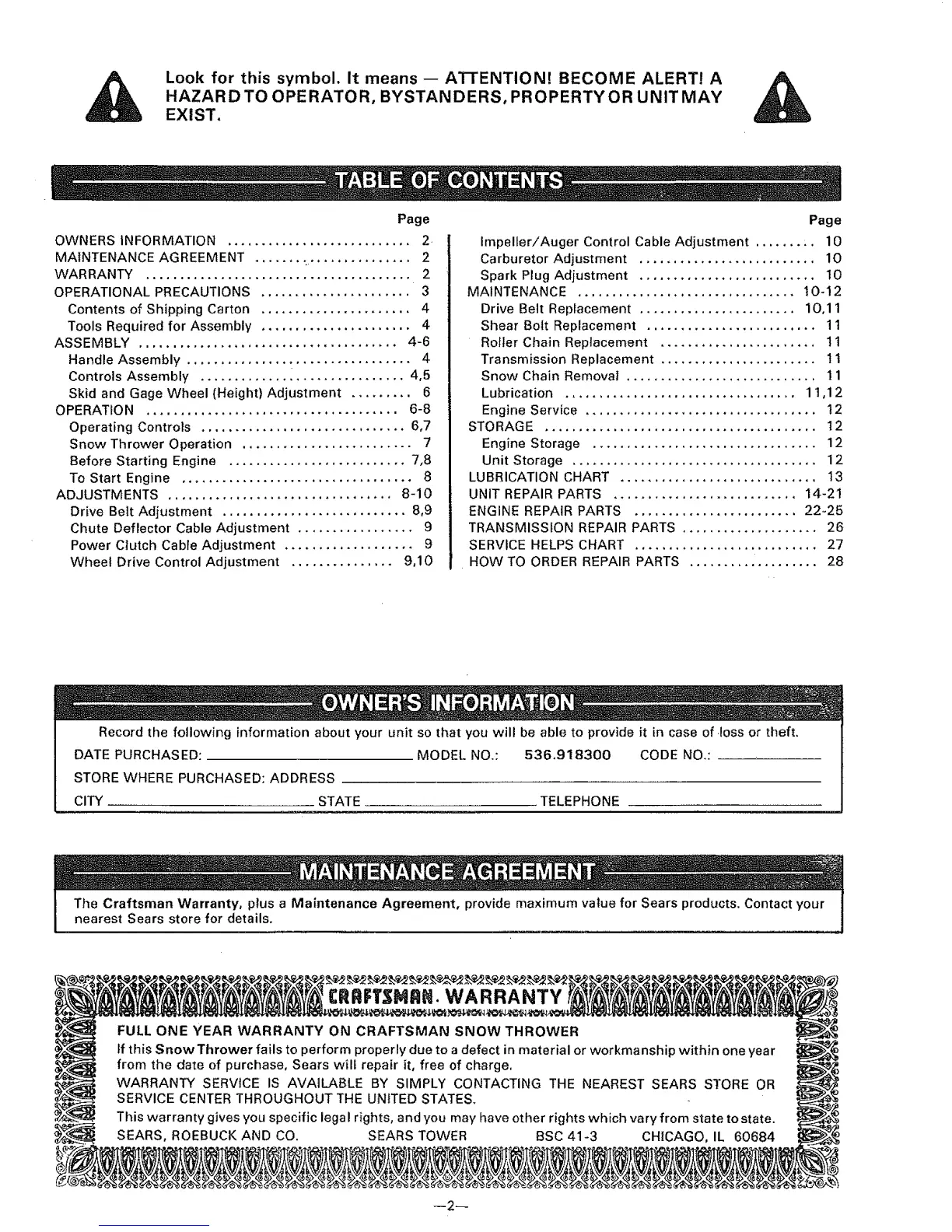 The Craftsman Warranty, plus a Maintenance Agreement, provide maximum value for Sears products. Contact your