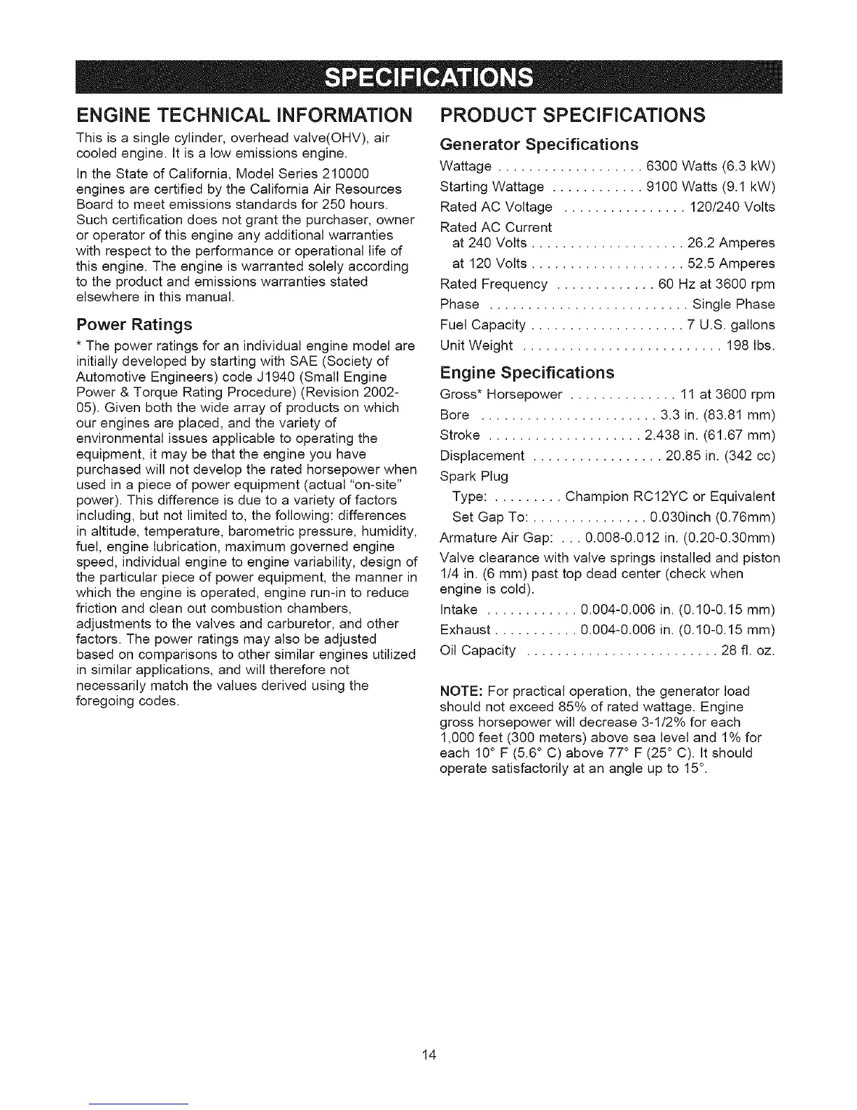 Generator Specifications